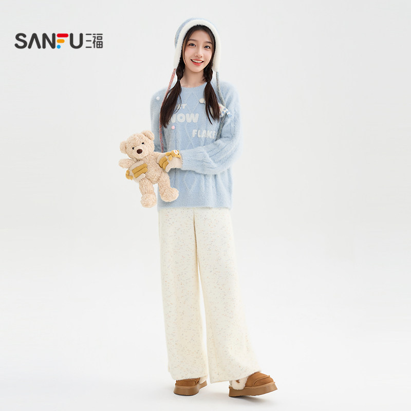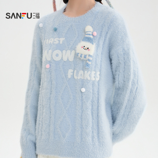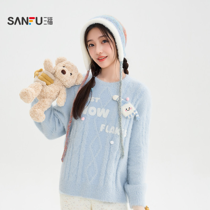 猫人圆领毛衣女加绒加厚秋冬2025新款 内搭一体上衣 东北针织打底衫
