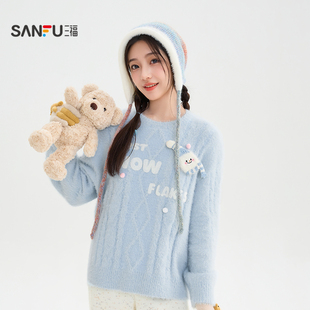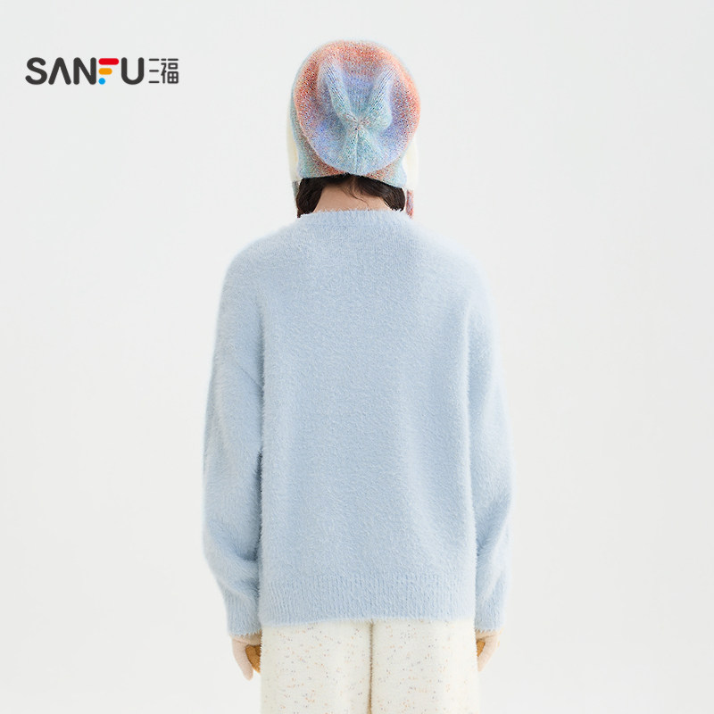 节日氛围感宽松休闲上衣 新款 巴卜Studio 红色毛衣不含毛领冬季