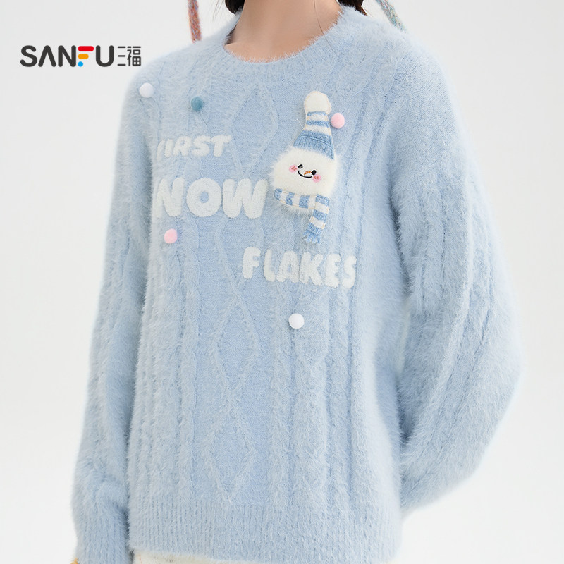 减龄显瘦针织上衣 韩版 话里设计感百搭卷领花线毛衣2025秋季 新新款