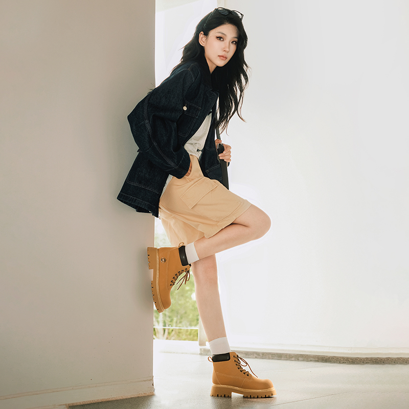 靴登山工装 英伦风时装 靴厚底大黄靴 2025秋新款 骆驼山越马丁靴女鞋