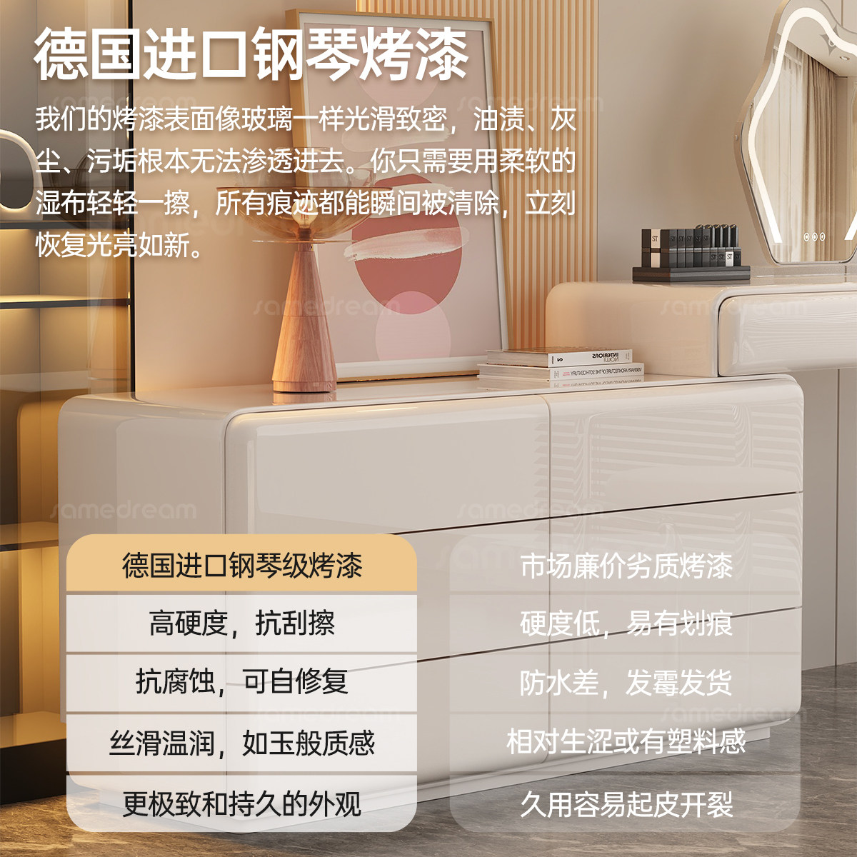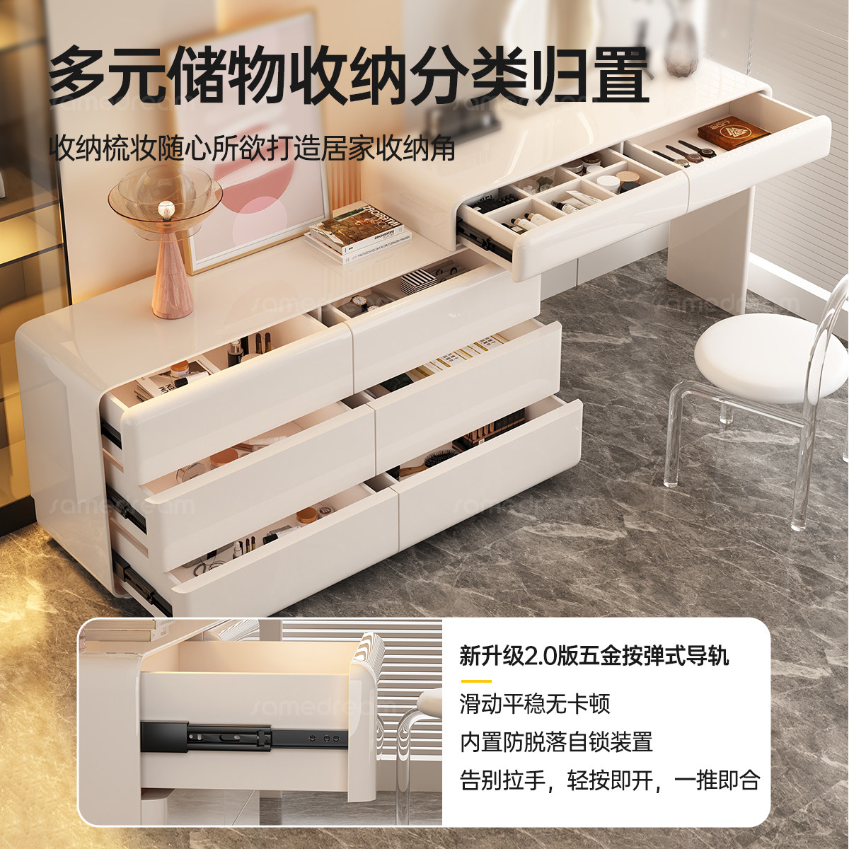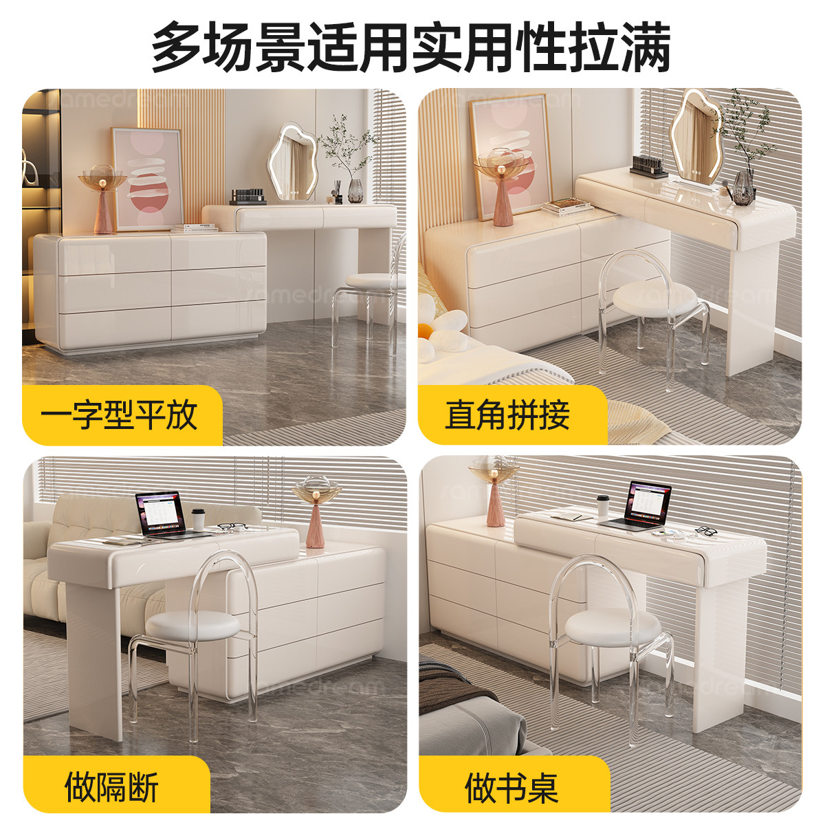 2025新款 奶油风梳妆台卧室现代简约收纳柜斗柜一体实木化妆桌床尾