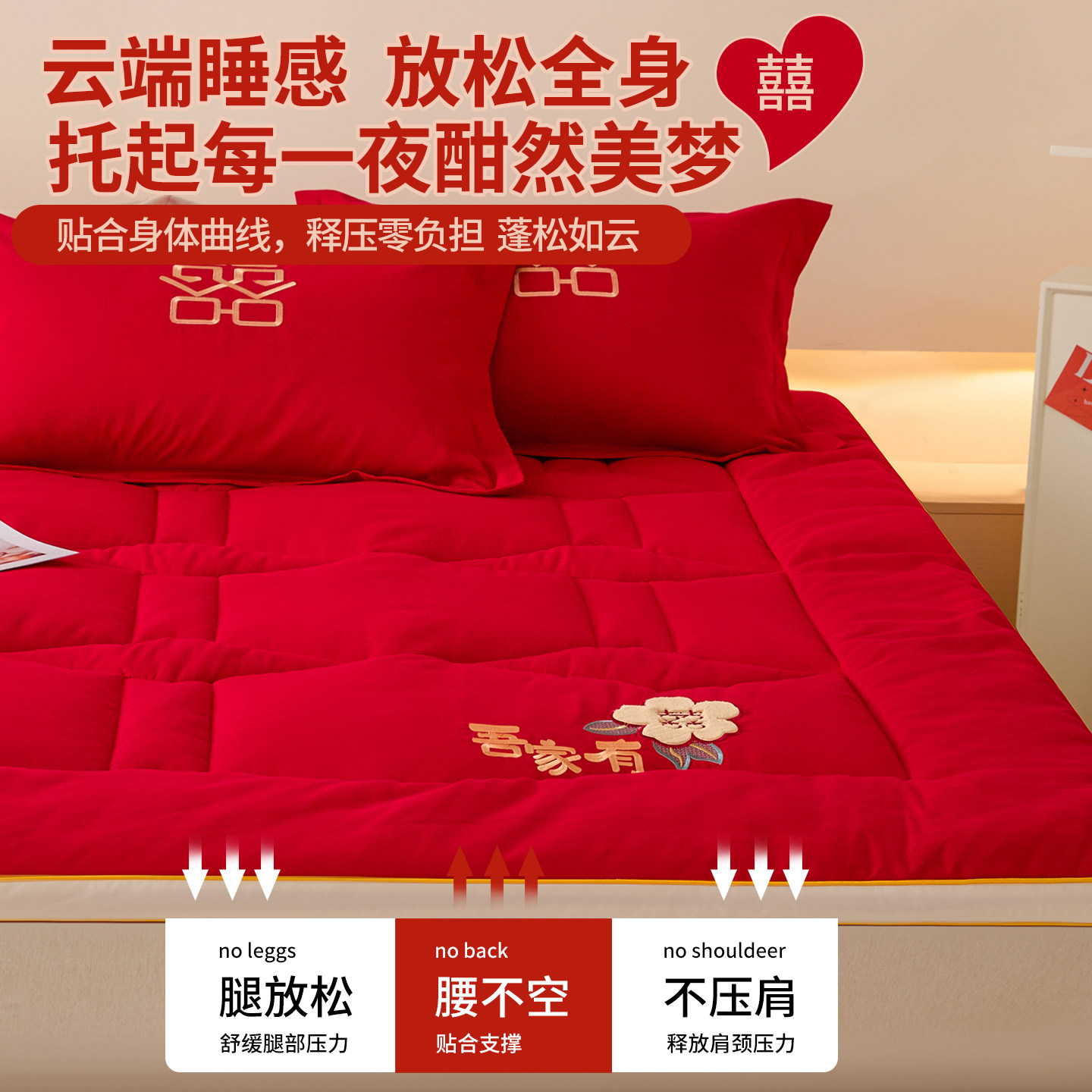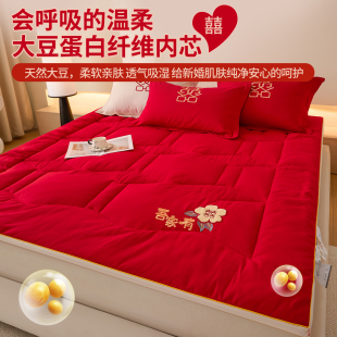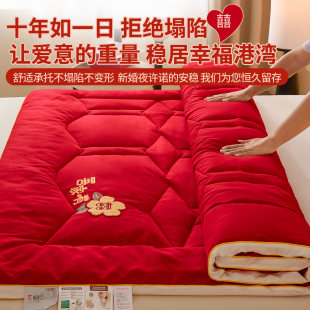 新婚红色婚庆床垫软垫家用卧室褥子垫被可折叠180x200cm双人被褥