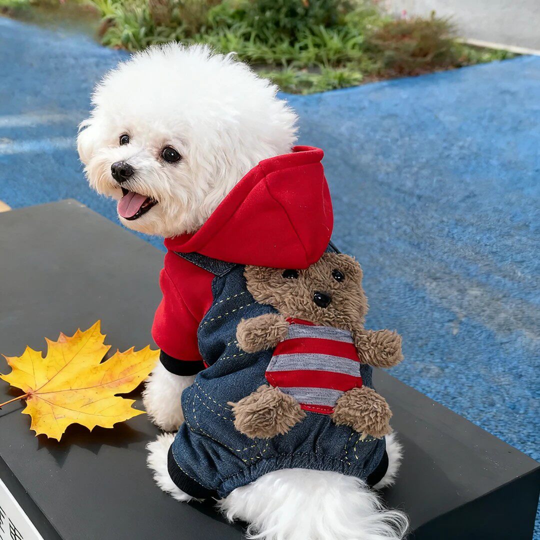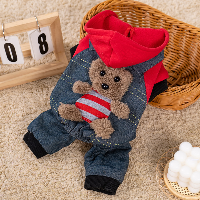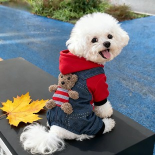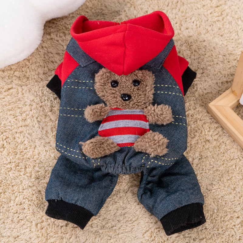 四脚衣服宠物服装 卡通风秋冬季 套装 可爱泰迪熊毛绒挂件狗狗背带裤