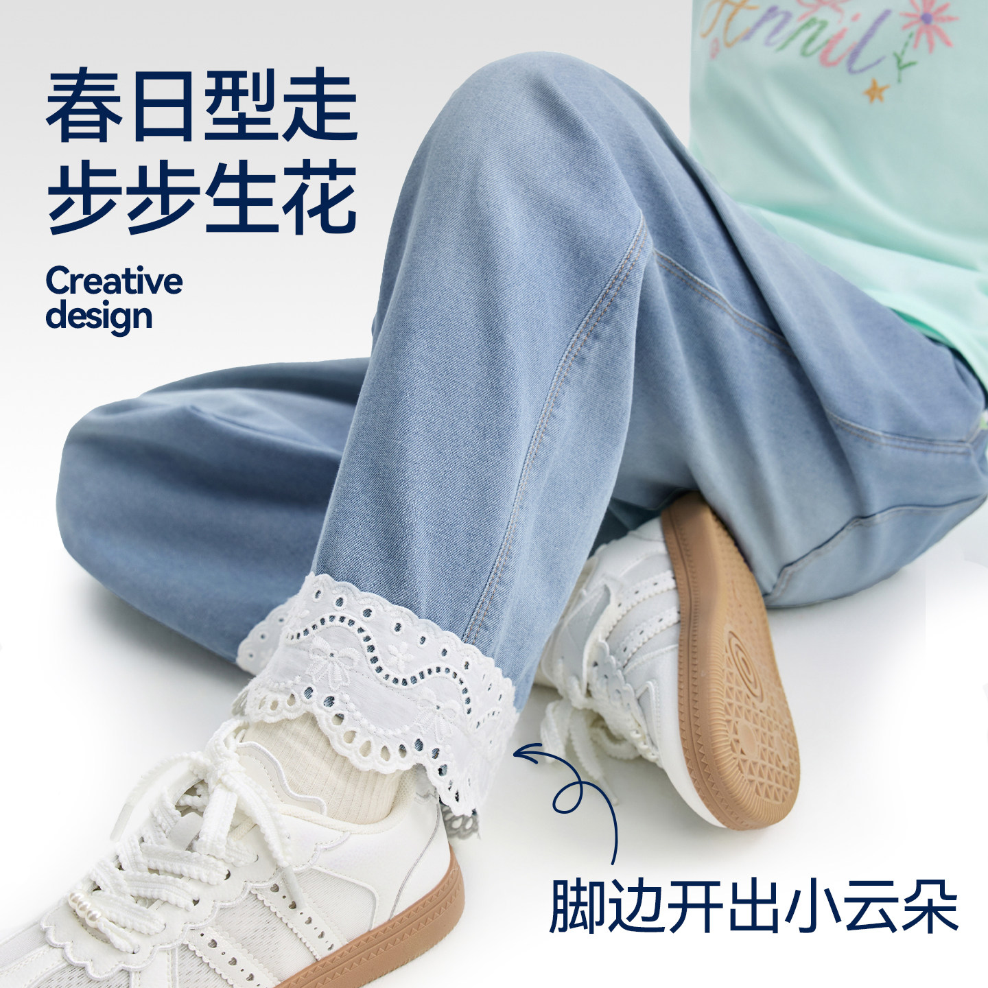 女童牛仔裤 宽松透气长裤 2026春新款 子时尚 全棉直筒裤 安奈儿童装