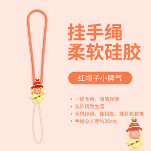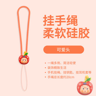 橙色手机挂绳硅胶星星人挂件短腕带耳机钥匙u盘ccd相机防丢链饰女