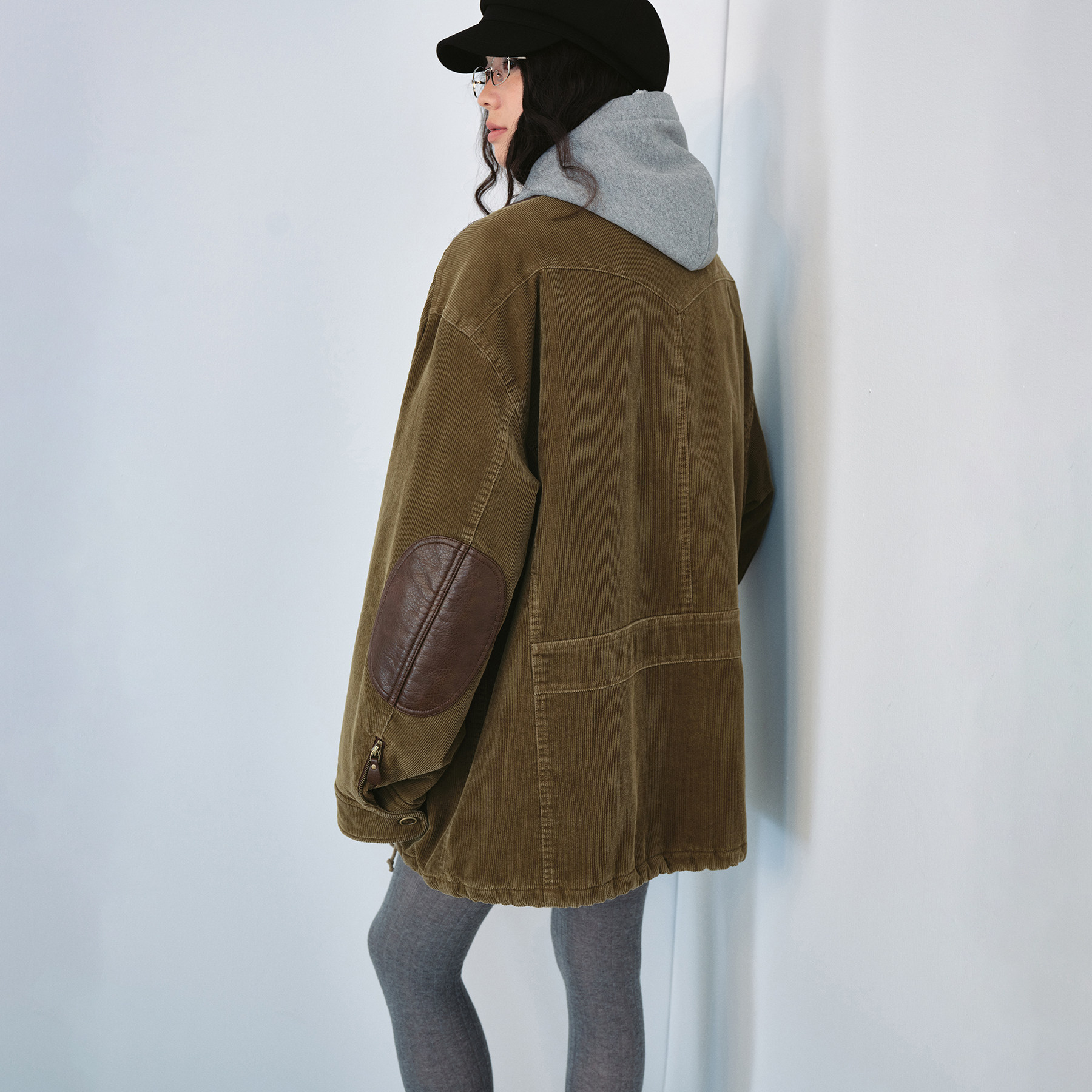 VERMO 灯芯绒翻领防风内绗绵羊毛保暖外套 复古褪色做旧质感