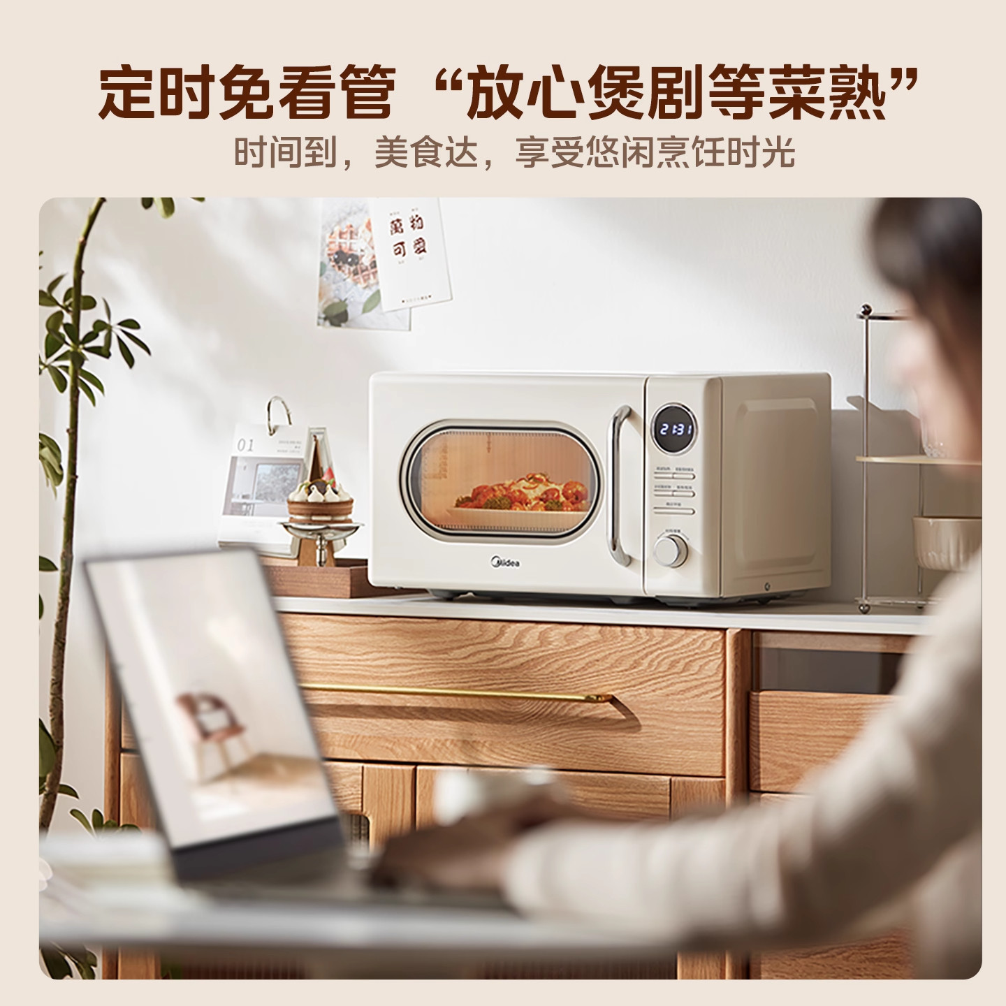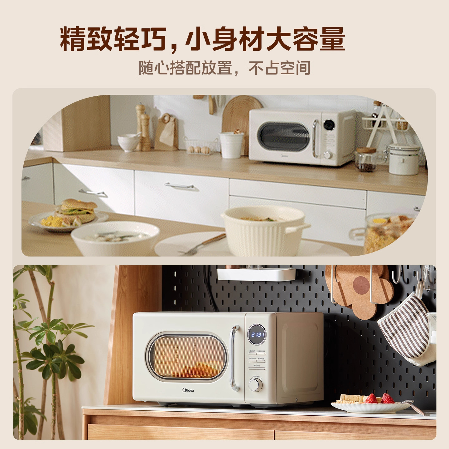 美 M2F 微波炉家用小尺寸复古奶油白蒸煮炖热多功能一体小型正品