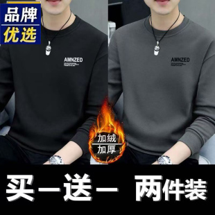 卫衣t恤秋冬加绒加厚打底上衣新款 纯棉男士 白色绿色 长袖 品牌男装