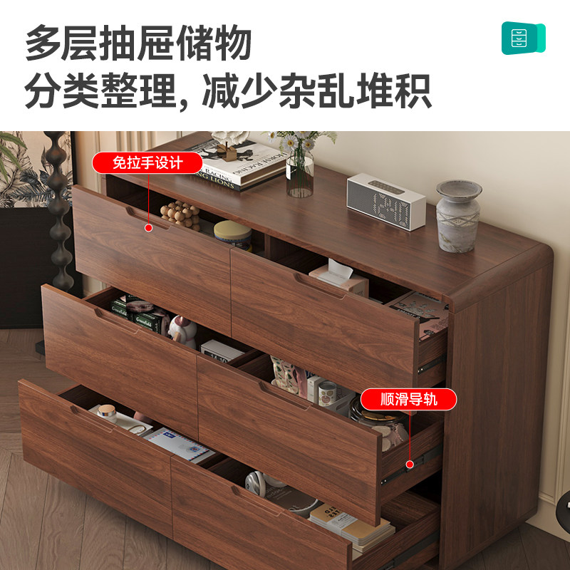 三梦实木斗柜卧室靠墙床尾柜大容量储物柜收纳柜客厅抽屉柜五斗柜