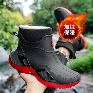 厨房家用防水鞋 加绒保暖防滑水鞋 户外钓鱼雨靴冬 雨鞋 回力高筒男士