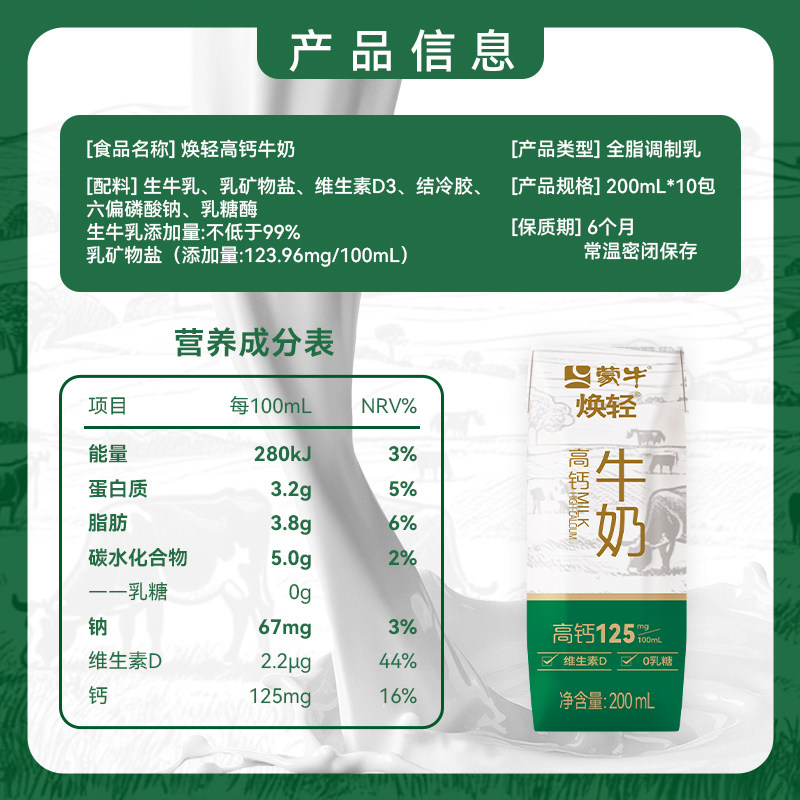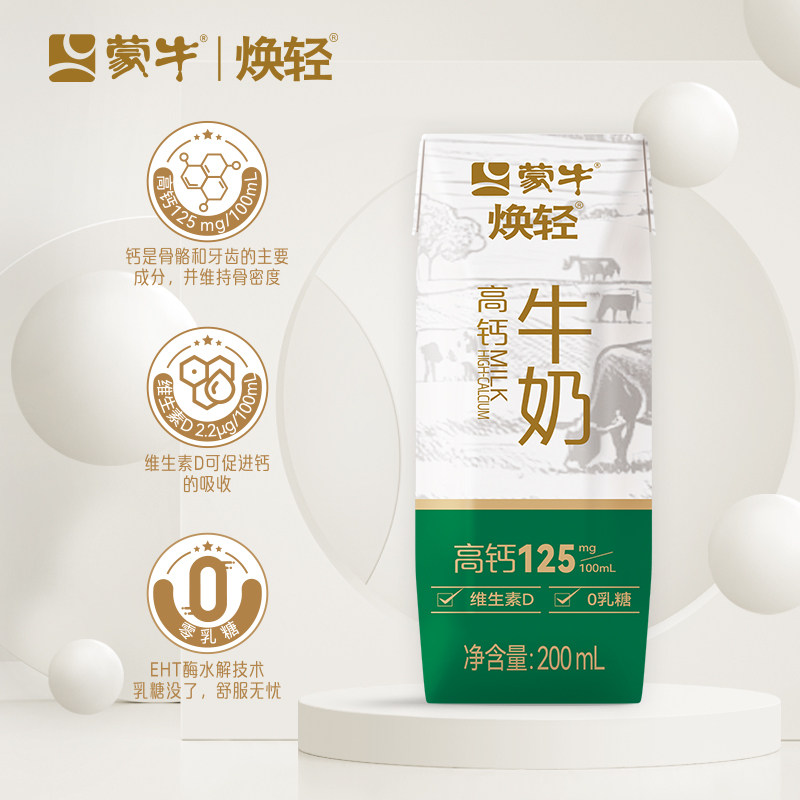 10盒官方正品 蒙牛新品 焕轻高钙0乳糖中老年牛奶早餐奶200ml