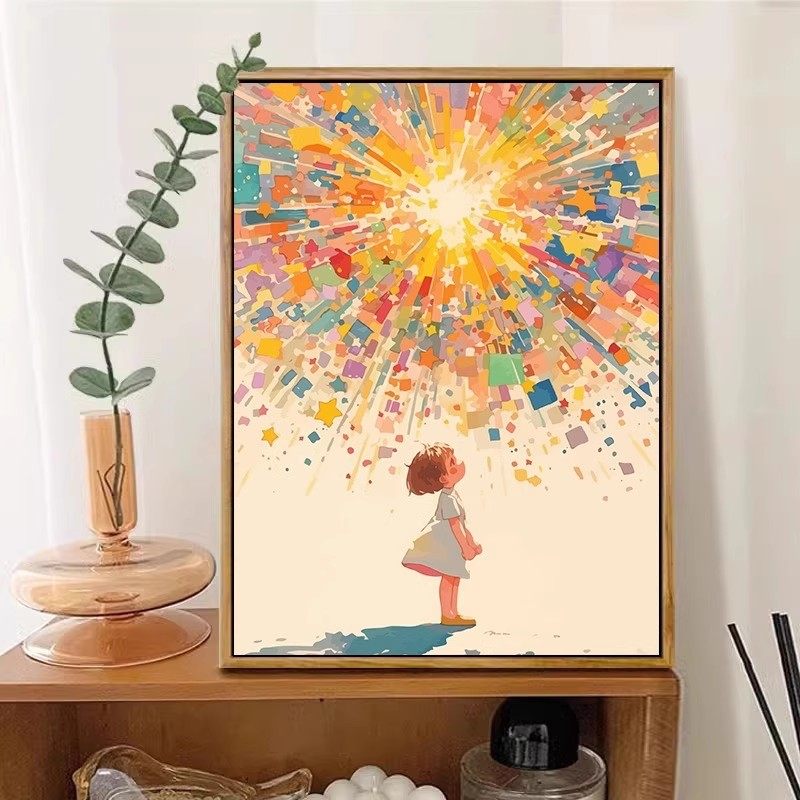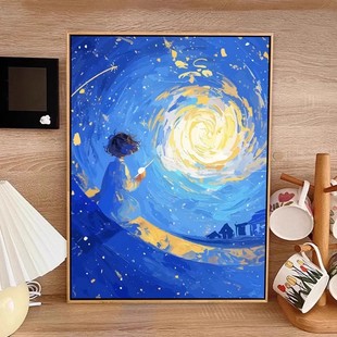 太阳女孩梵高装 饰画仿油画设计小众艺术治愈系儿童卧室客厅摆挂画