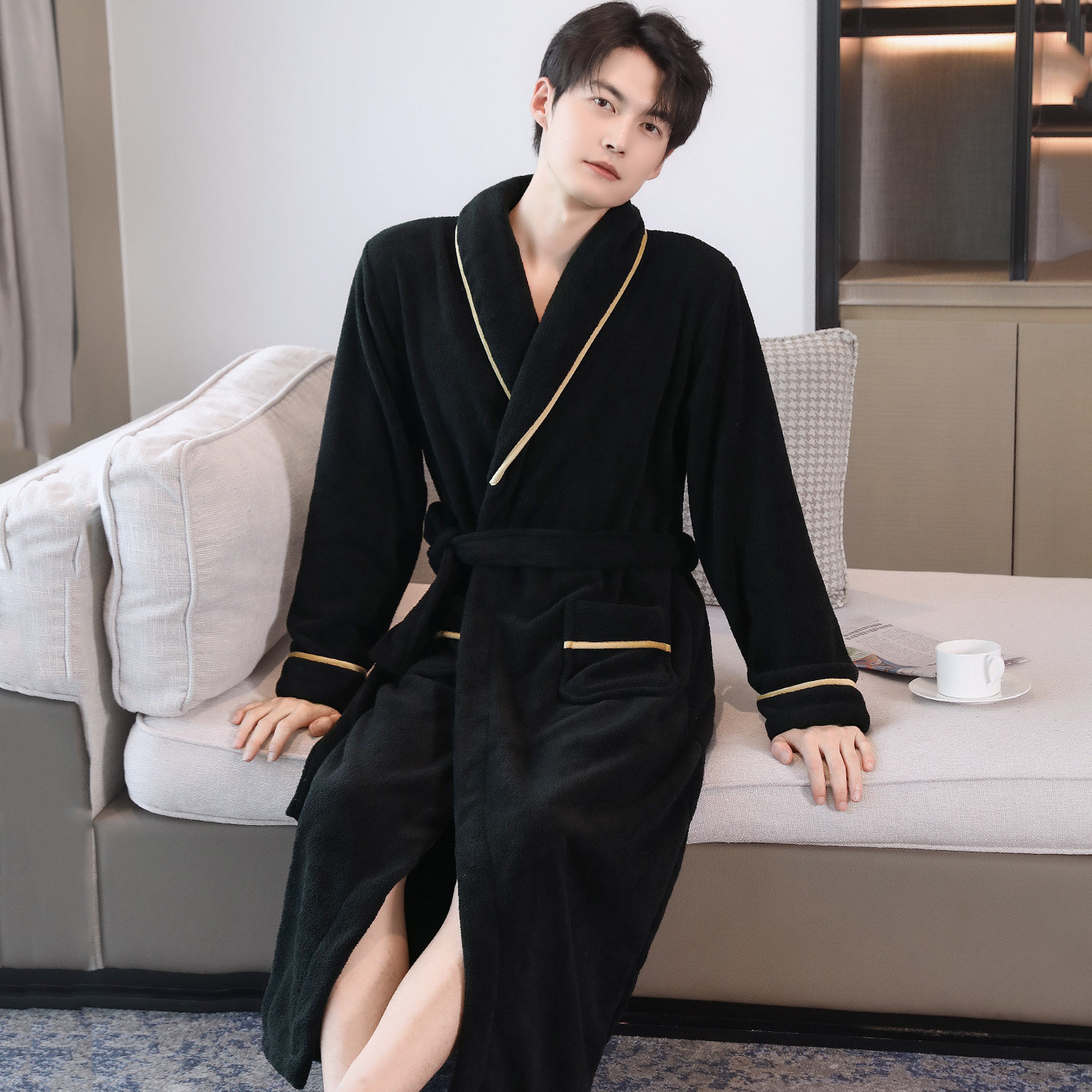 长款 2025珊瑚绒保暖睡衣男士 浴袍秋冬浴衣 新款 加厚加绒睡袍男冬季