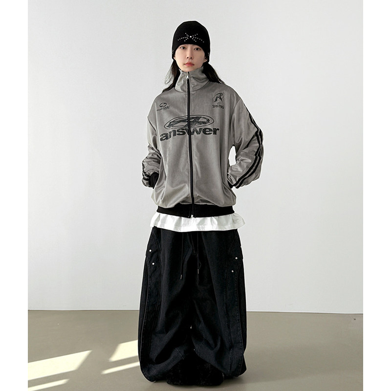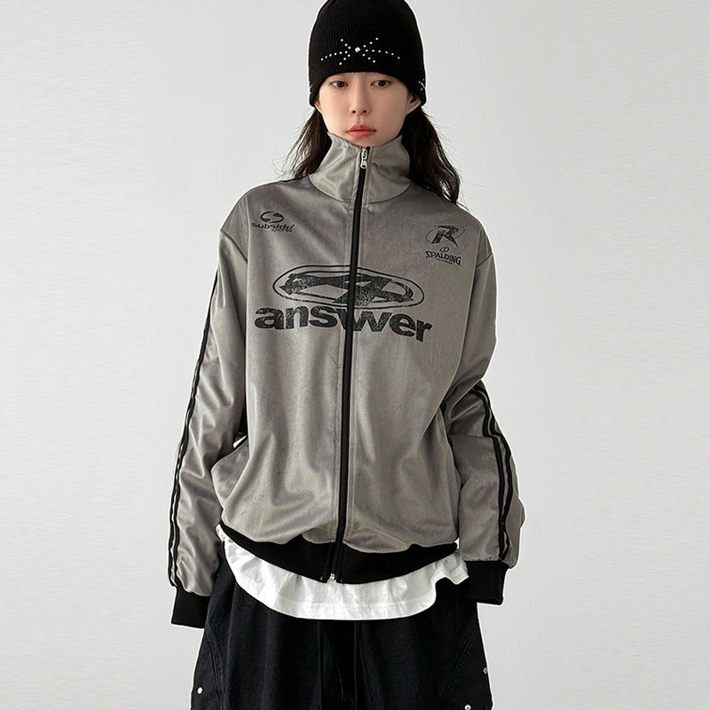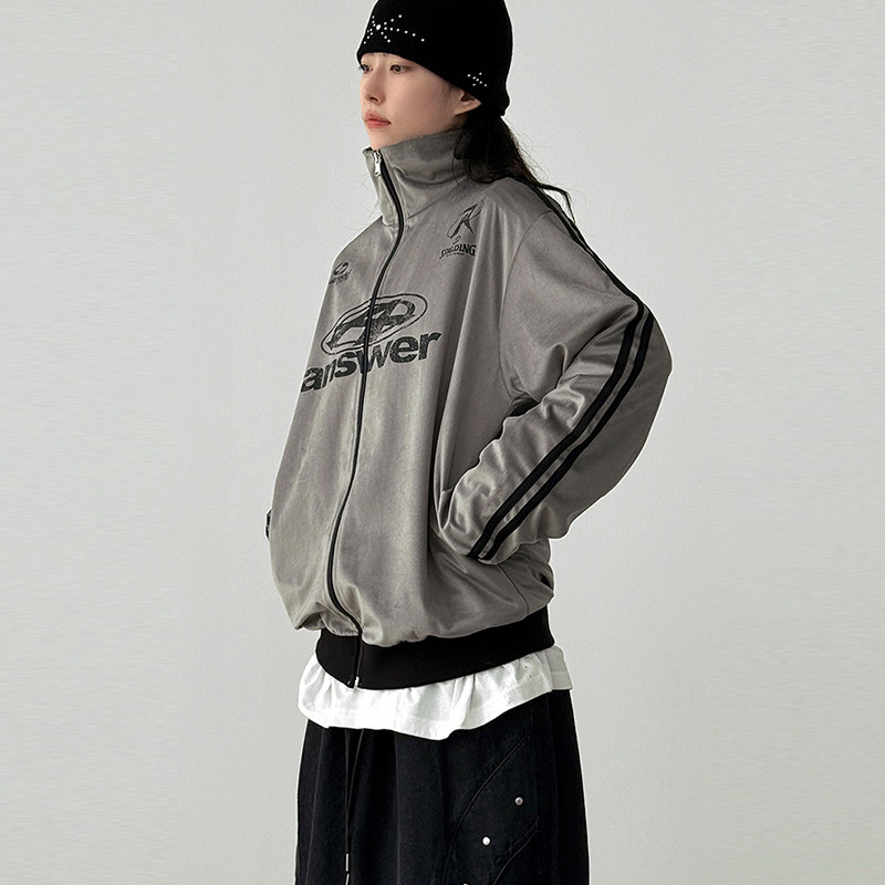 neck velour track 韩代25F unisex high jersey 线条印花外套
