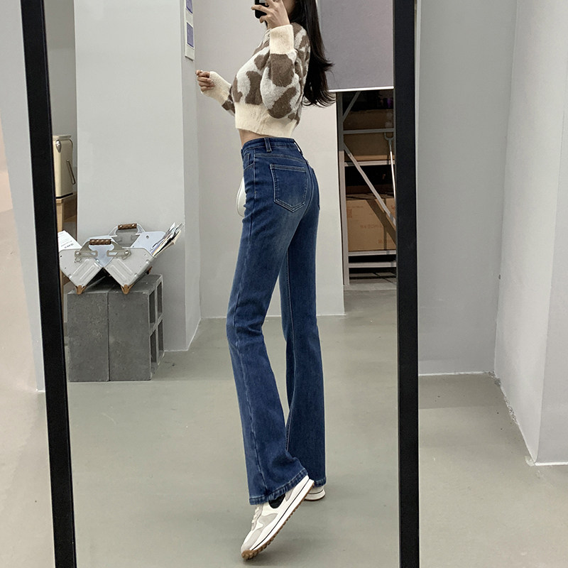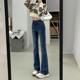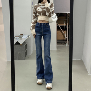 低腰休闲裤 李李服饰加绒老钱风复古金属纽扣微喇牛仔裤 女2025冬季