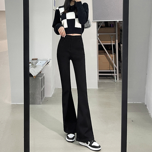 女7929 加厚加绒正腰高弹拉链微喇黑色牛仔裤 THESOONG 年度黑牛