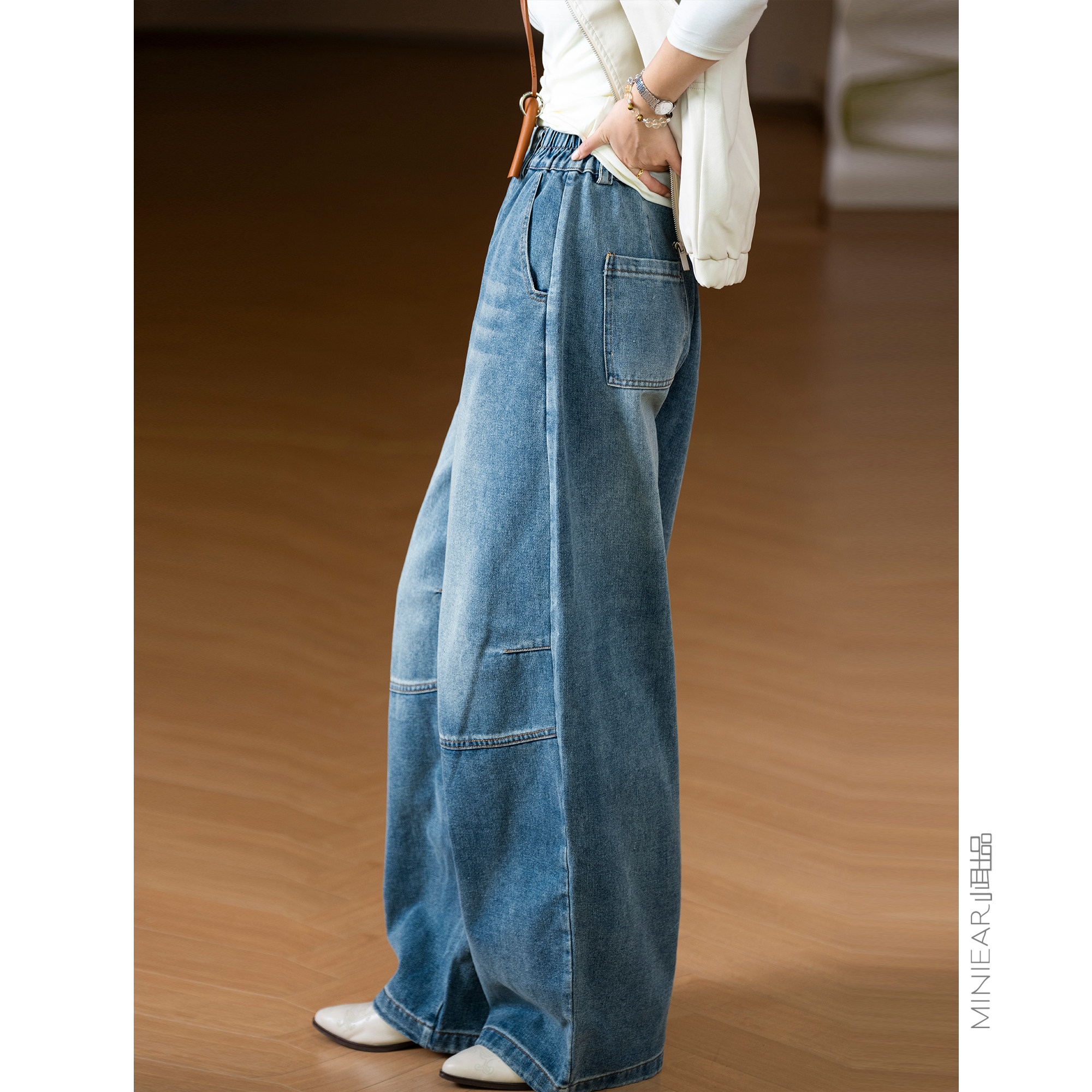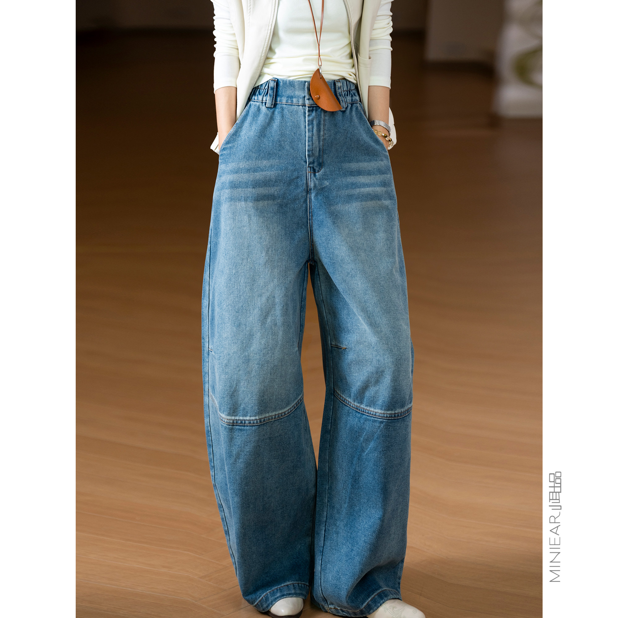 男2025年秋冬水洗猫须松紧腰宽松长裤 复古蓝直筒牛仔裤 潮 美式 DAL