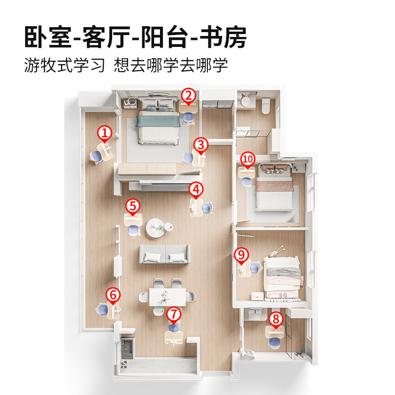 大满贯实木儿童学习桌小学生专用书桌一体家用小户型写字桌大路灯