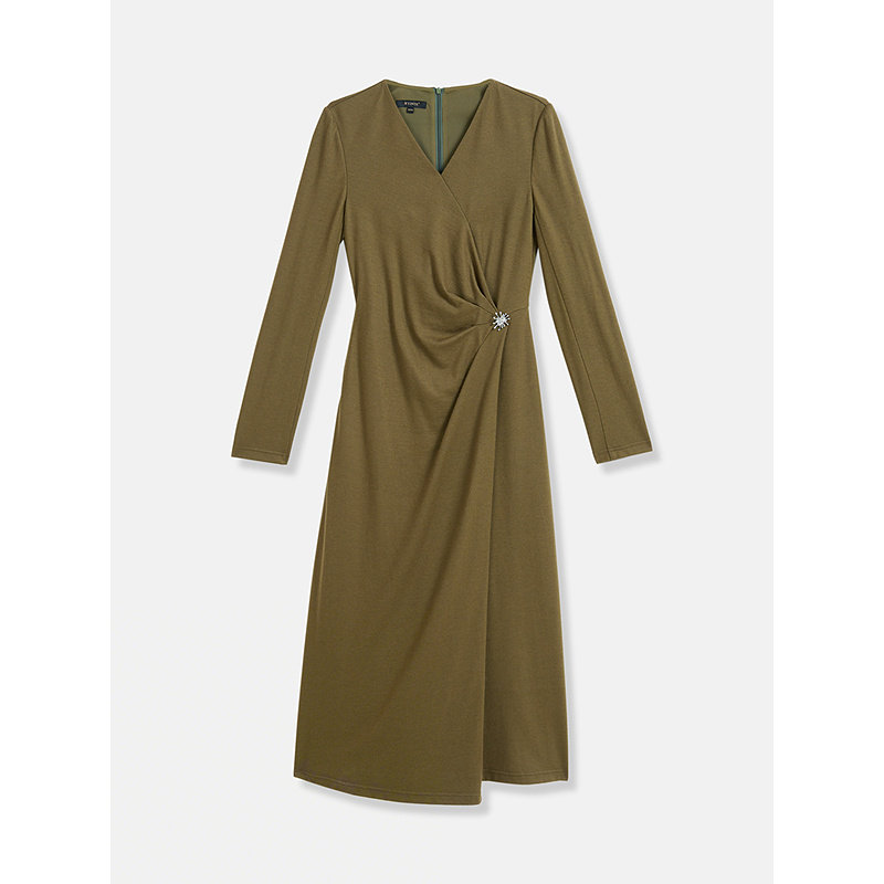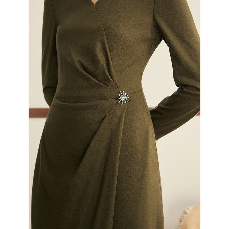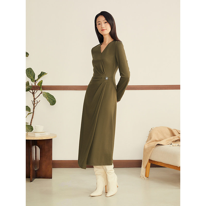 V领澳洲美丽诺羊毛混纺针织连衣裙 法式 YINER音儿2025冬季 新款
