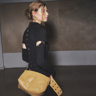 单排扣毛衣女 纽扣拼接袖 CLOUD WILD白云野边正反两穿高领毛针织衫