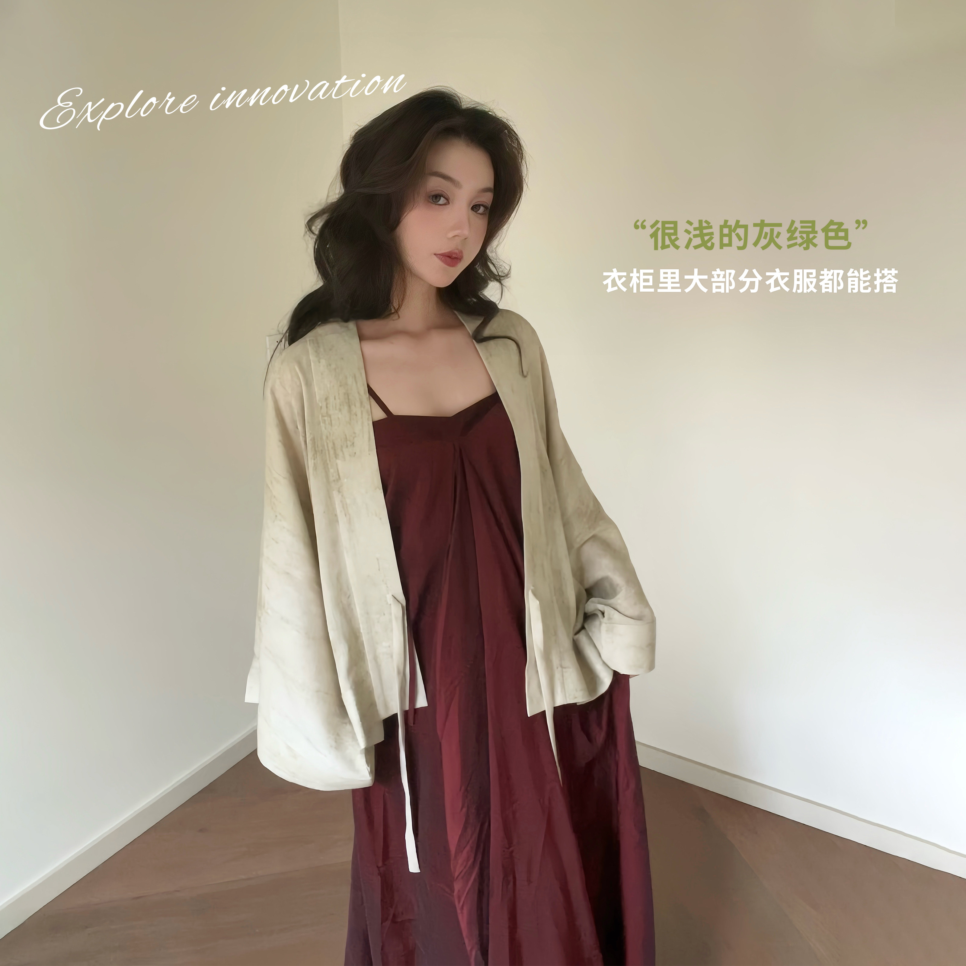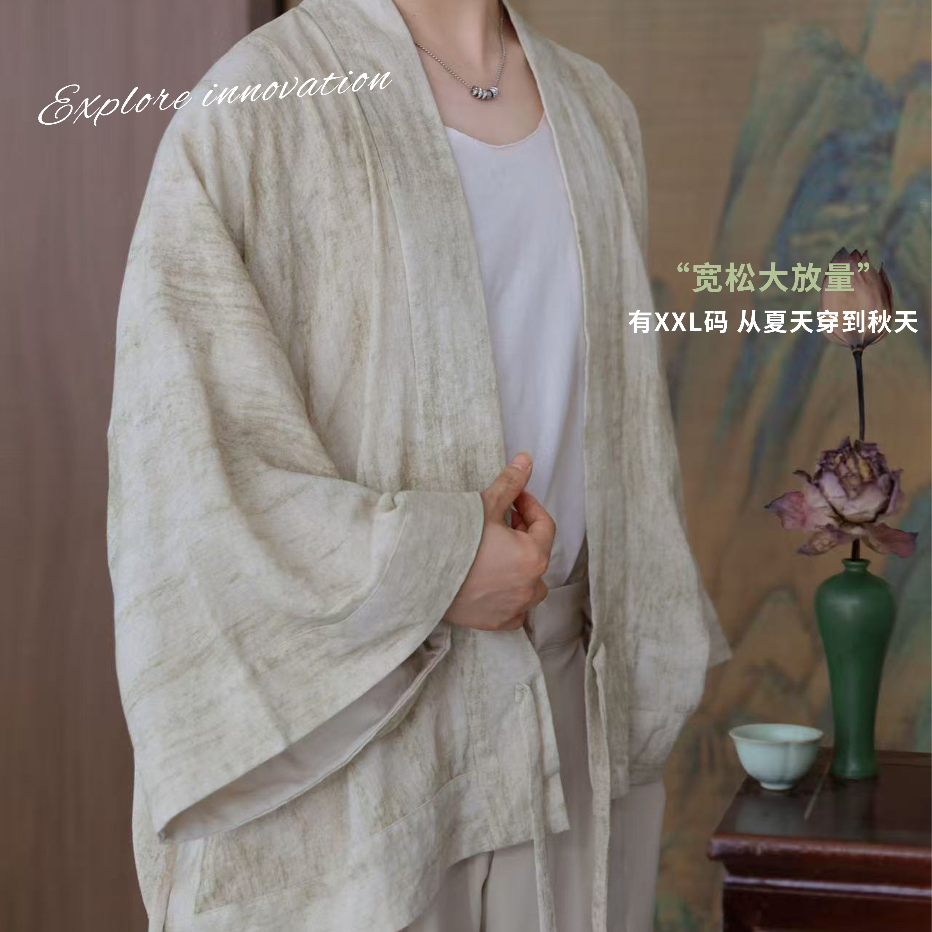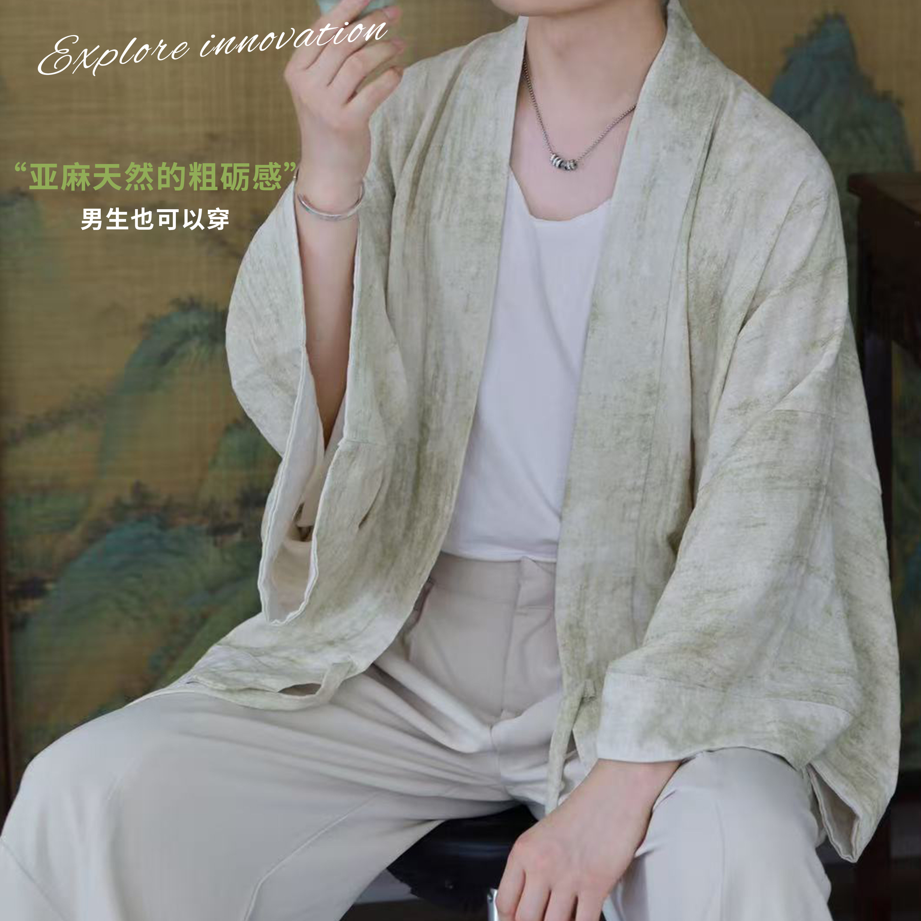 貉袖 尾巴 宋制汉服上衣宽松外套粘纤亚麻灰绿 夏天 花朝记白驹