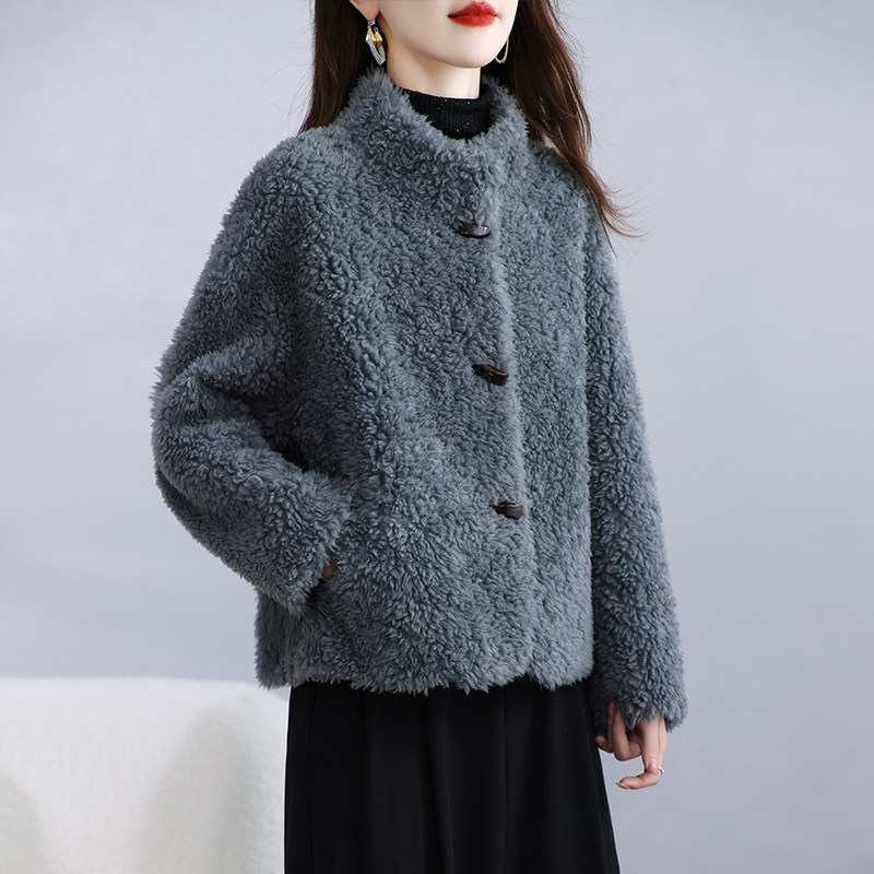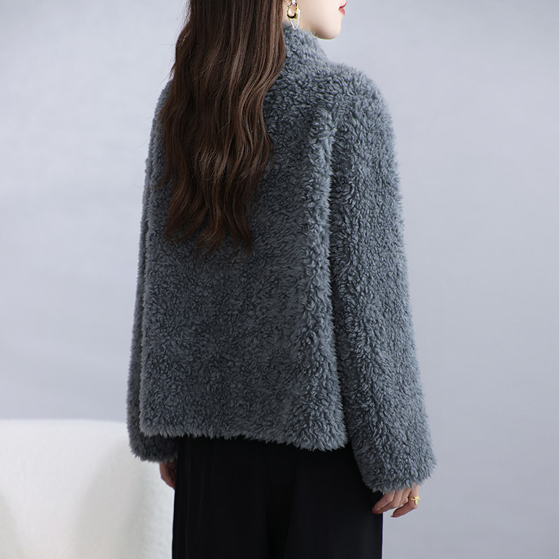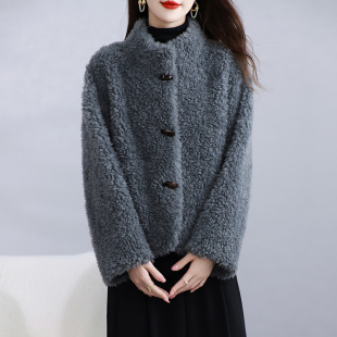 2025新款 立领保暖一体简约羊羔毛大衣冬 海宁颗粒绒皮草外套女短款