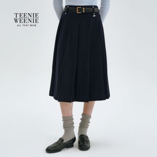 高腰A字裙褶边裙 TeenieWeenie小熊女半身裙秋冬中长款 赠腰带