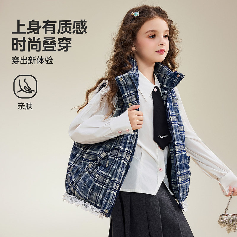 鸭鸭轻薄羽绒服马甲女V领反季 背心休闲蓬松鸭绒马夹外套X 基础修身