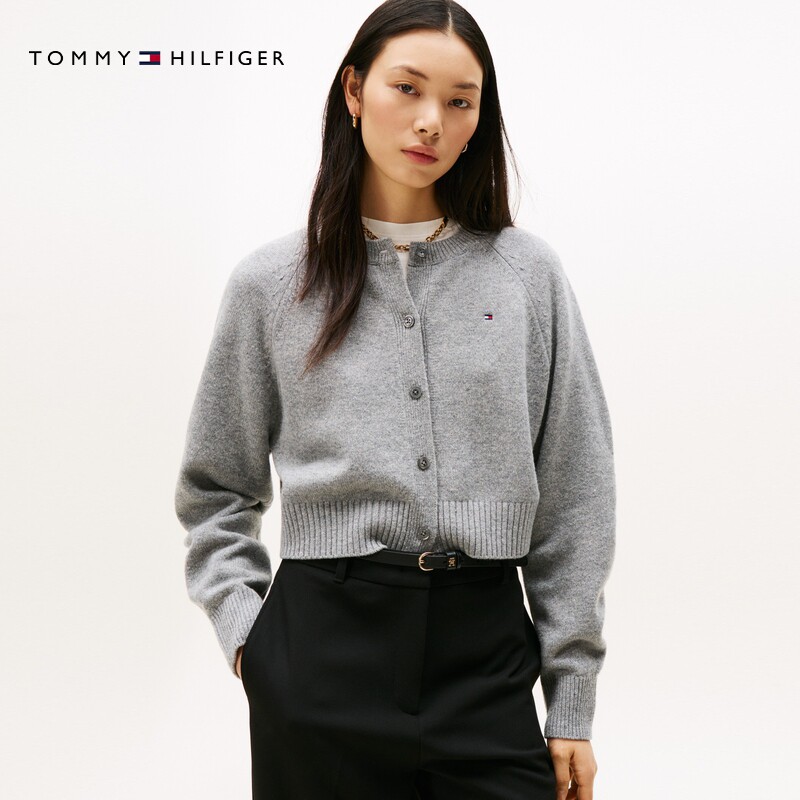 复古宽松慵懒风圆领针织开衫 Tommy秋冬女装 毛衣外套 绒感羊毛