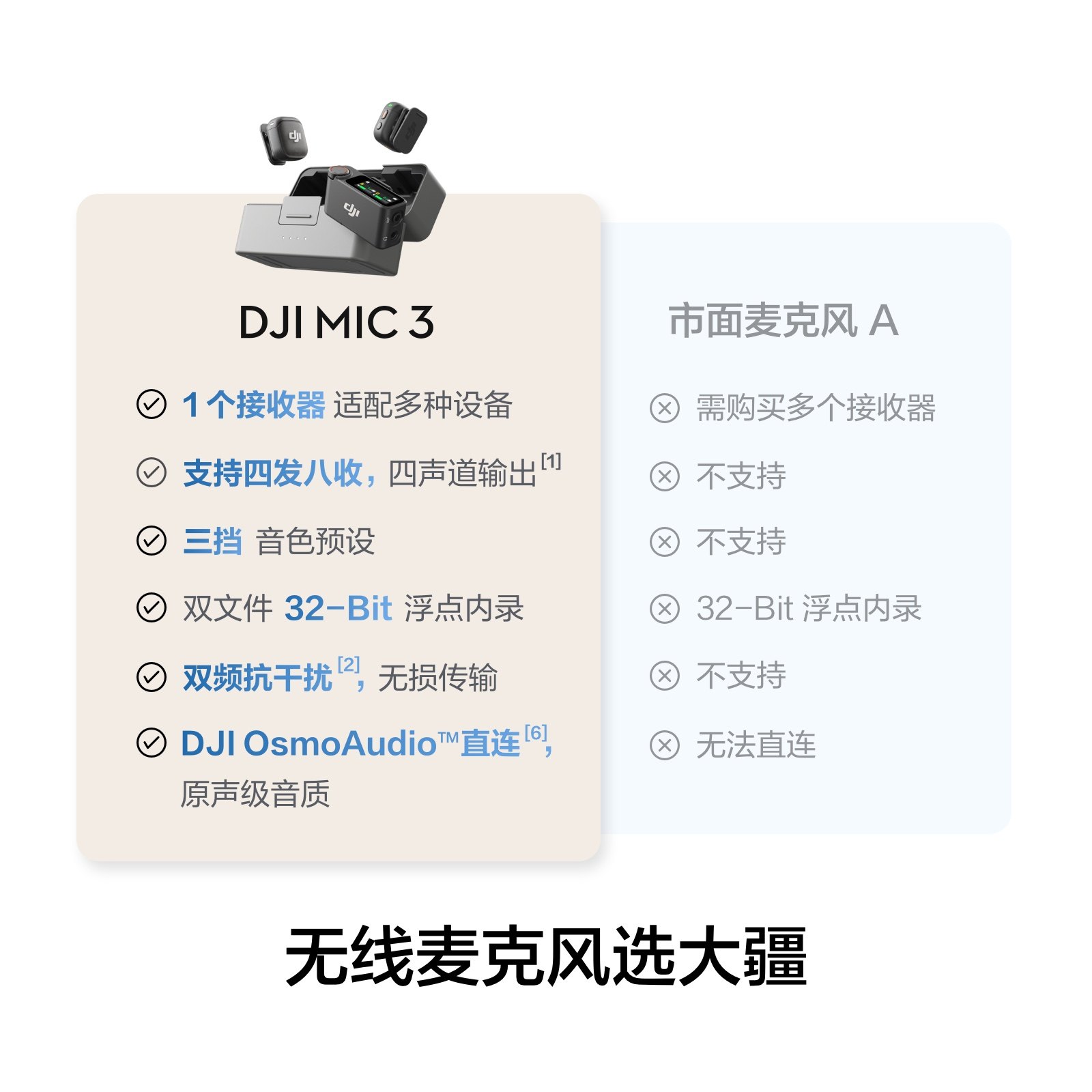 进阶迷你无线麦克风 大疆 Mic 采访直播vlog领夹降噪收音麦 DJI