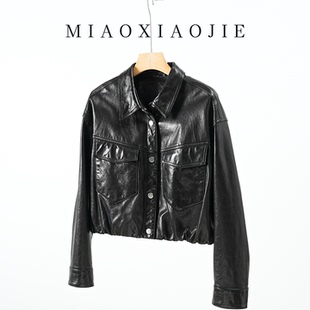 高级感赫本油蜡真皮皮衣女机车皮夹克羊皮短款 小个子外套2025新款