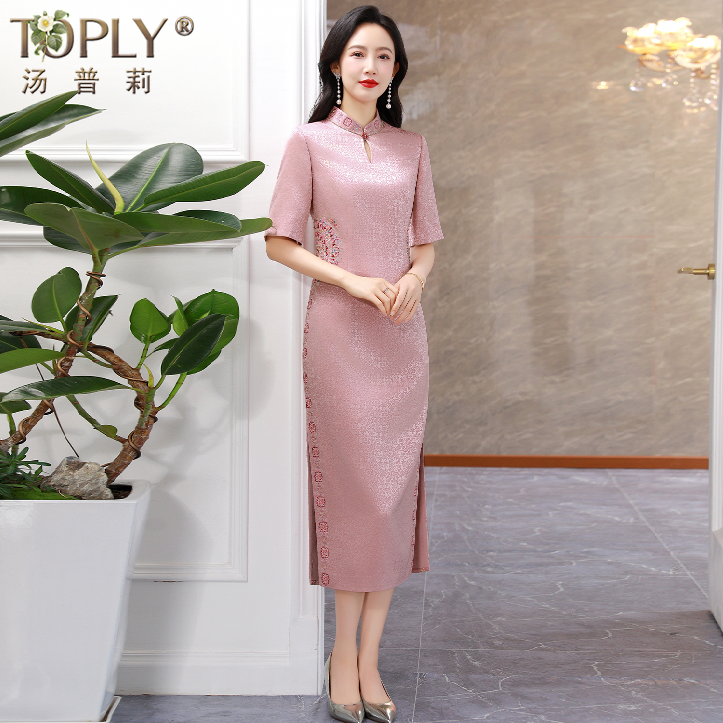 高端喜婆婆婚宴连衣裙2025新款 礼服改良旗袍 高贵醋酸妈妈婚礼大码