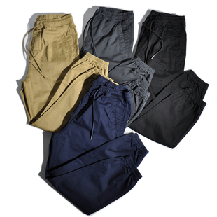 日系松紧抽绳阔腿锥形弹力休闲小脚裤 裤 复古宽松直筒束脚工装 美式