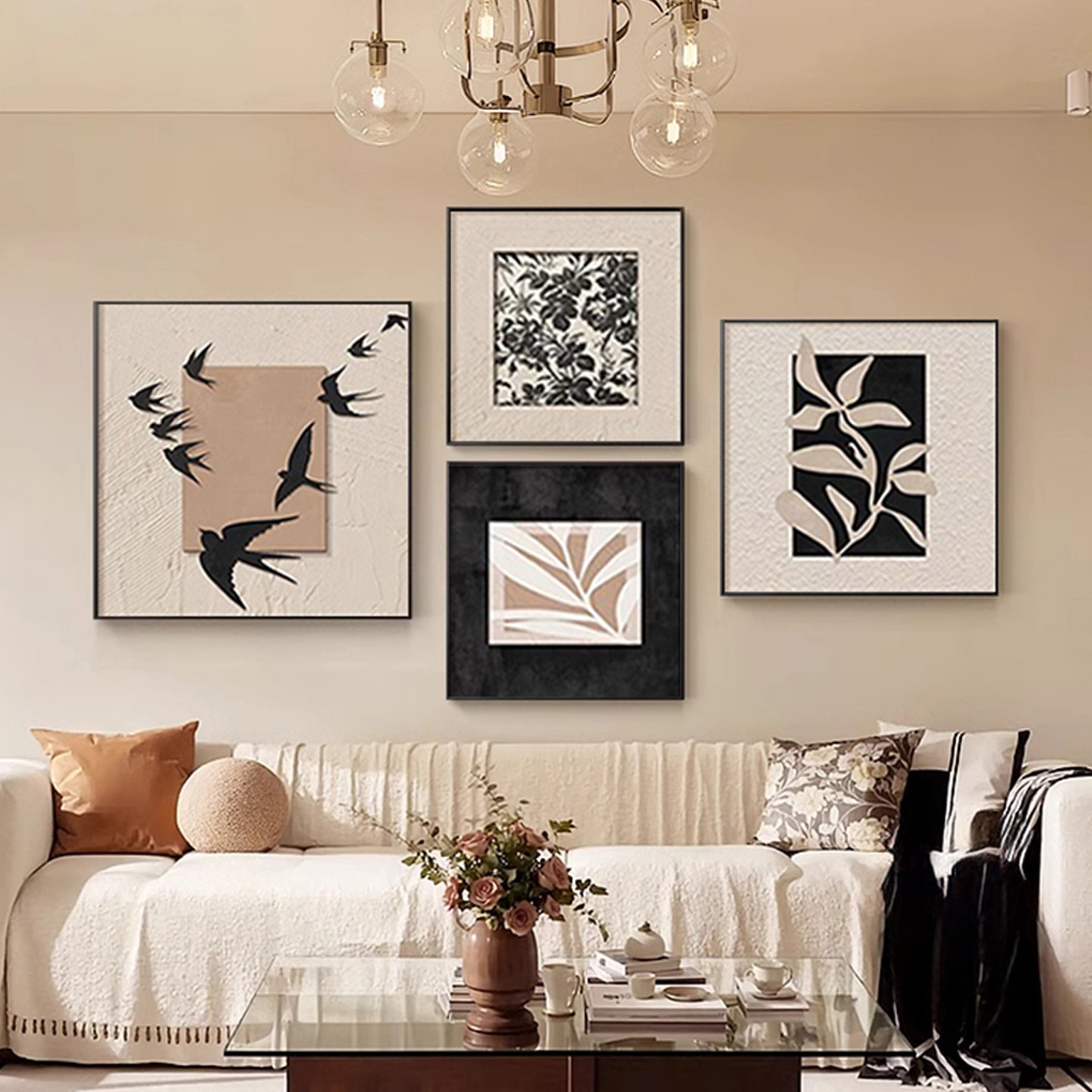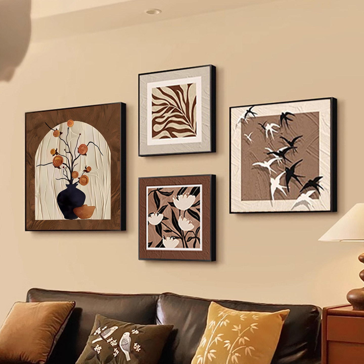 现代简约奶油风肌理餐厅装 饰画沙发背景墙挂画高级卧室床头壁画