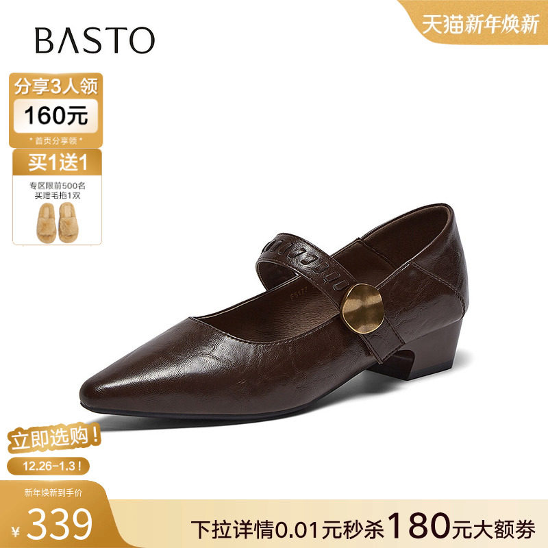 Bata羊皮书双重奏25冬商场复古加绒玛丽珍毛毛鞋 AUO26DQ5 软底单鞋