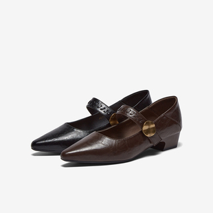2025冬季 小皮鞋 新款 千金珍珠高跟鞋 绝美浅口单鞋 达芙妮玛丽珍女鞋