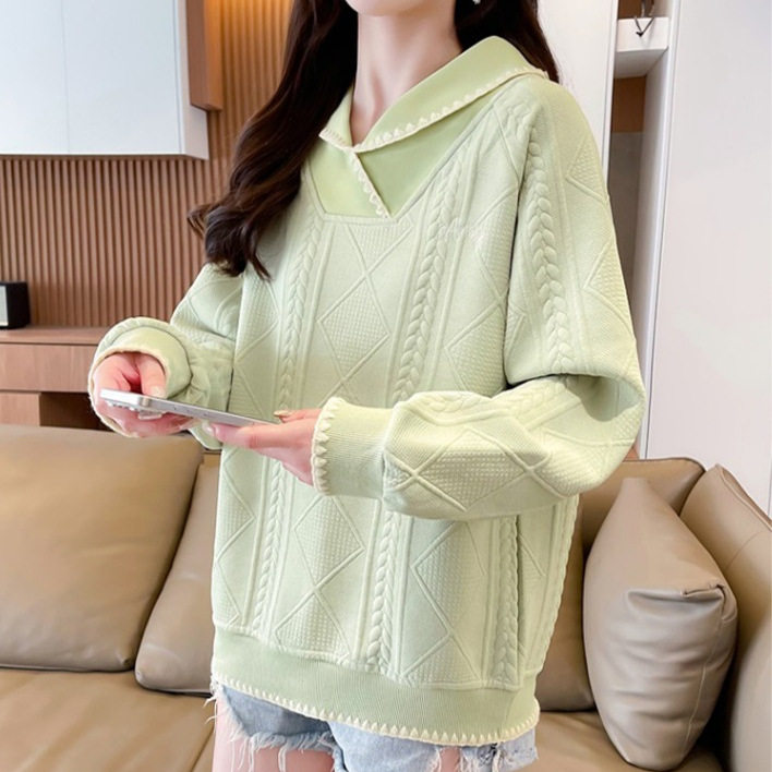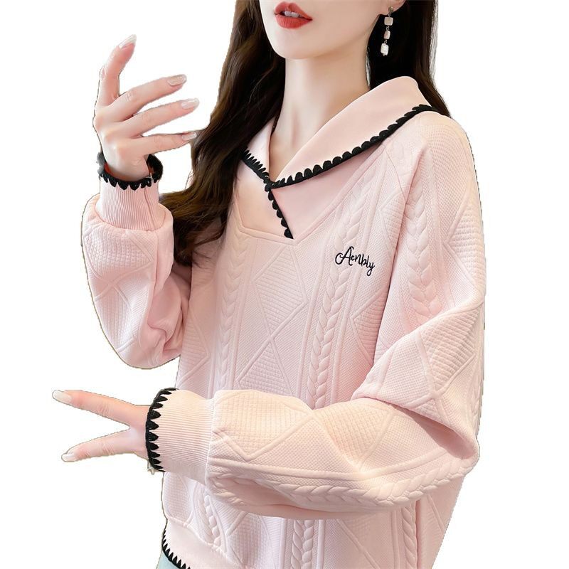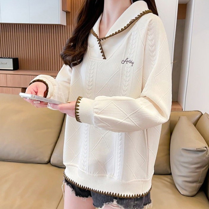 跨境早春设计感小众卫衣女春秋薄款 外穿字母刺绣日系polo领上衣