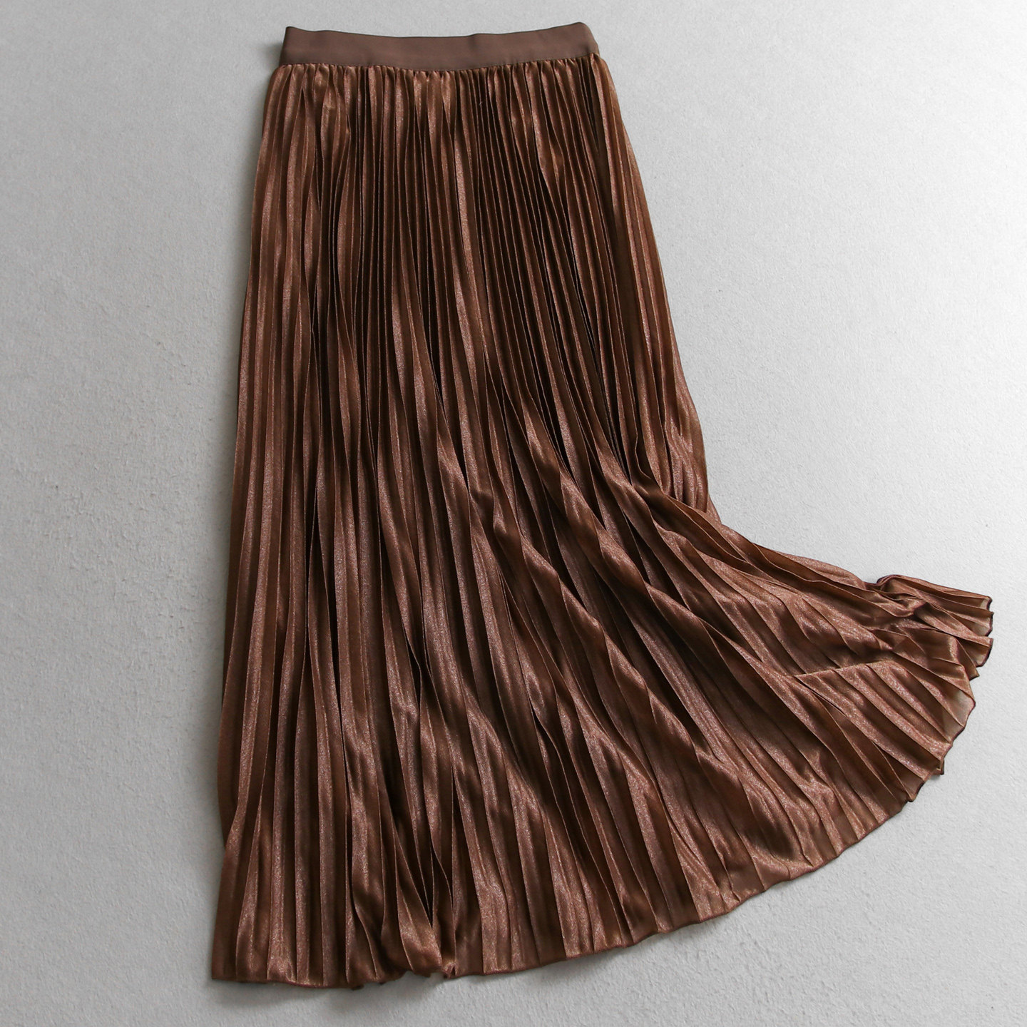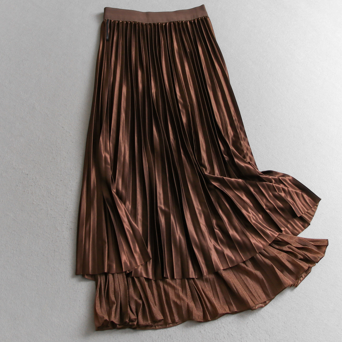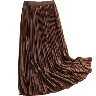 「双面穿」纯色松紧腰显瘦高腰垂感超仙百褶裙中长款 女半身裙V497