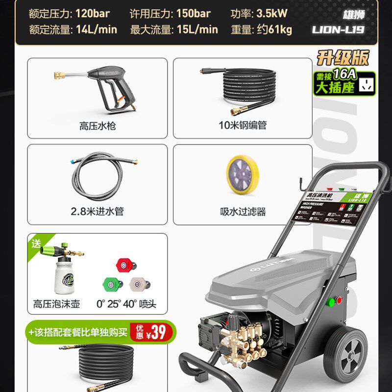 雄狮商用220v大功率高压水泵洗车场强力水枪清洗机工业洗车机