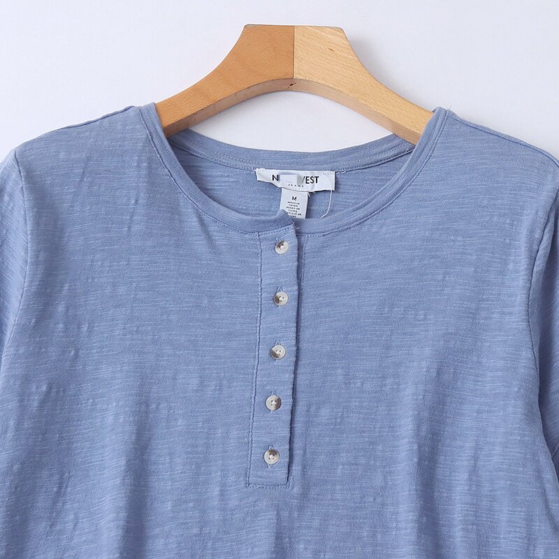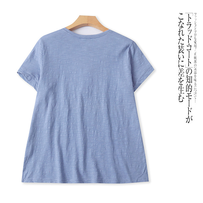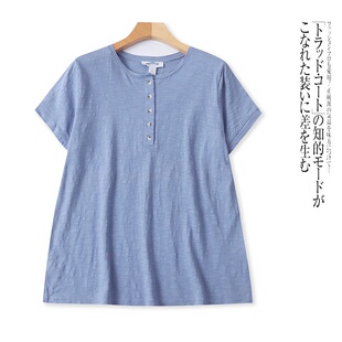 胖MM上衣 圆领有扣设计宽松大码 H8856外贸欧美女士短袖 T恤春夏新款