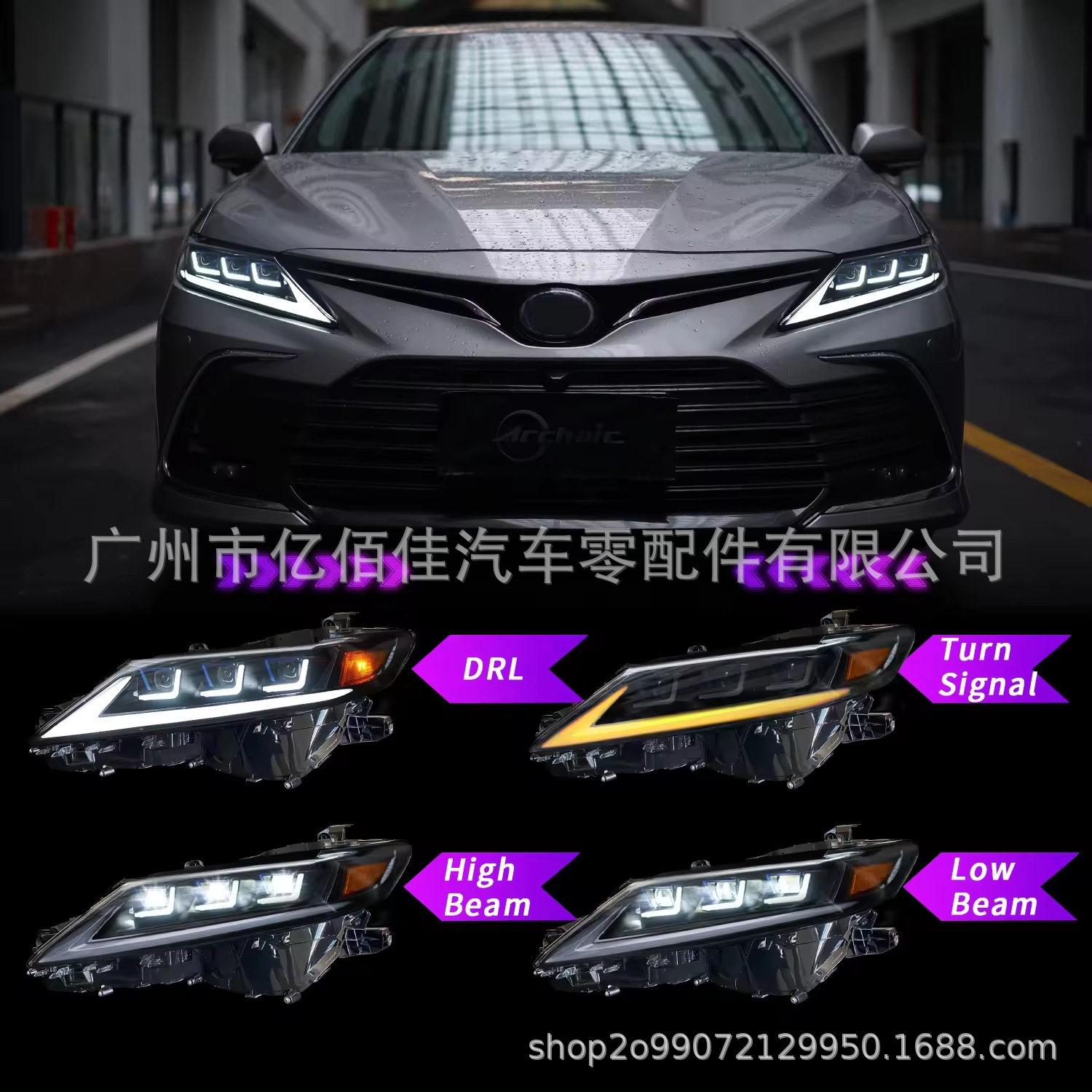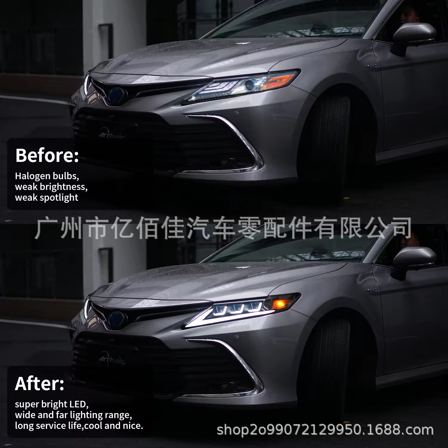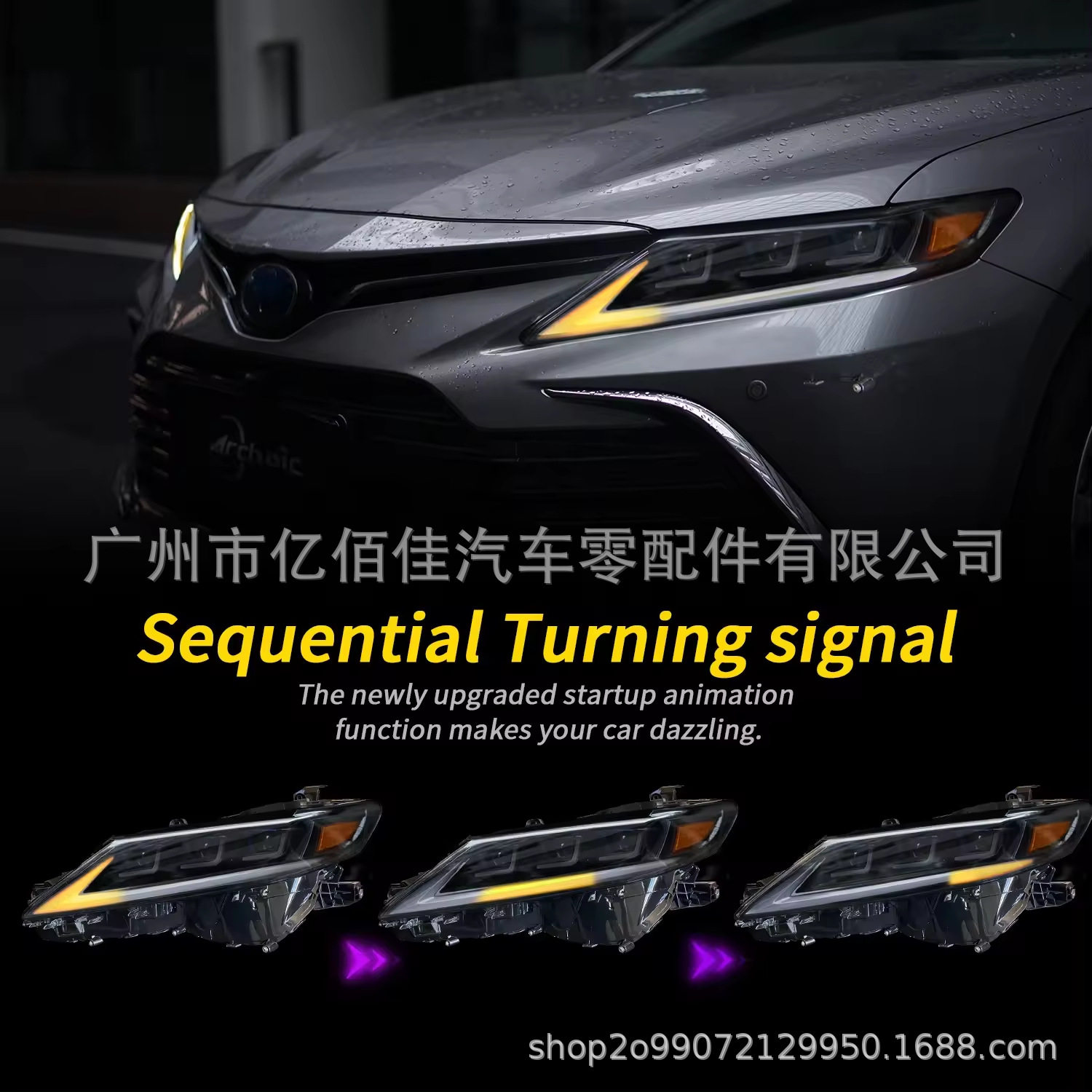 凯美瑞大灯三透镜前照灯LED改装 高配总成日行灯流水转向灯XV70 款