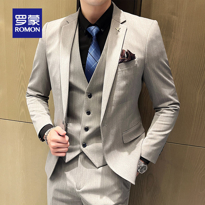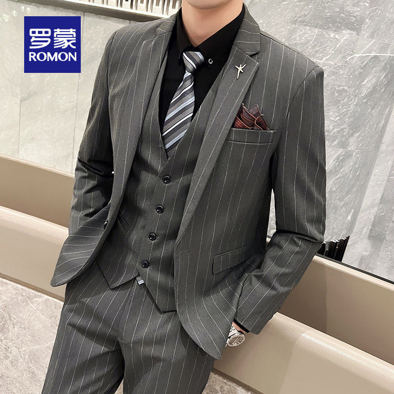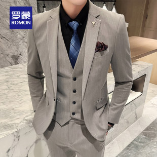商务宴会结婚新郎伴郎礼服西服套装 罗蒙男士 新款 2026春季 条纹西装