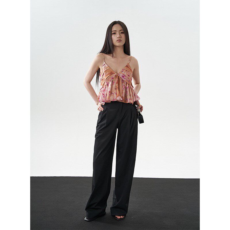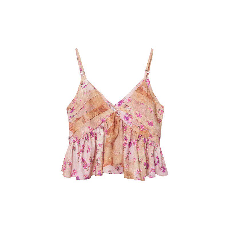 碎花吊带衫 无袖 百褶小衫 显瘦短款 上衣女 修身 春夏新款