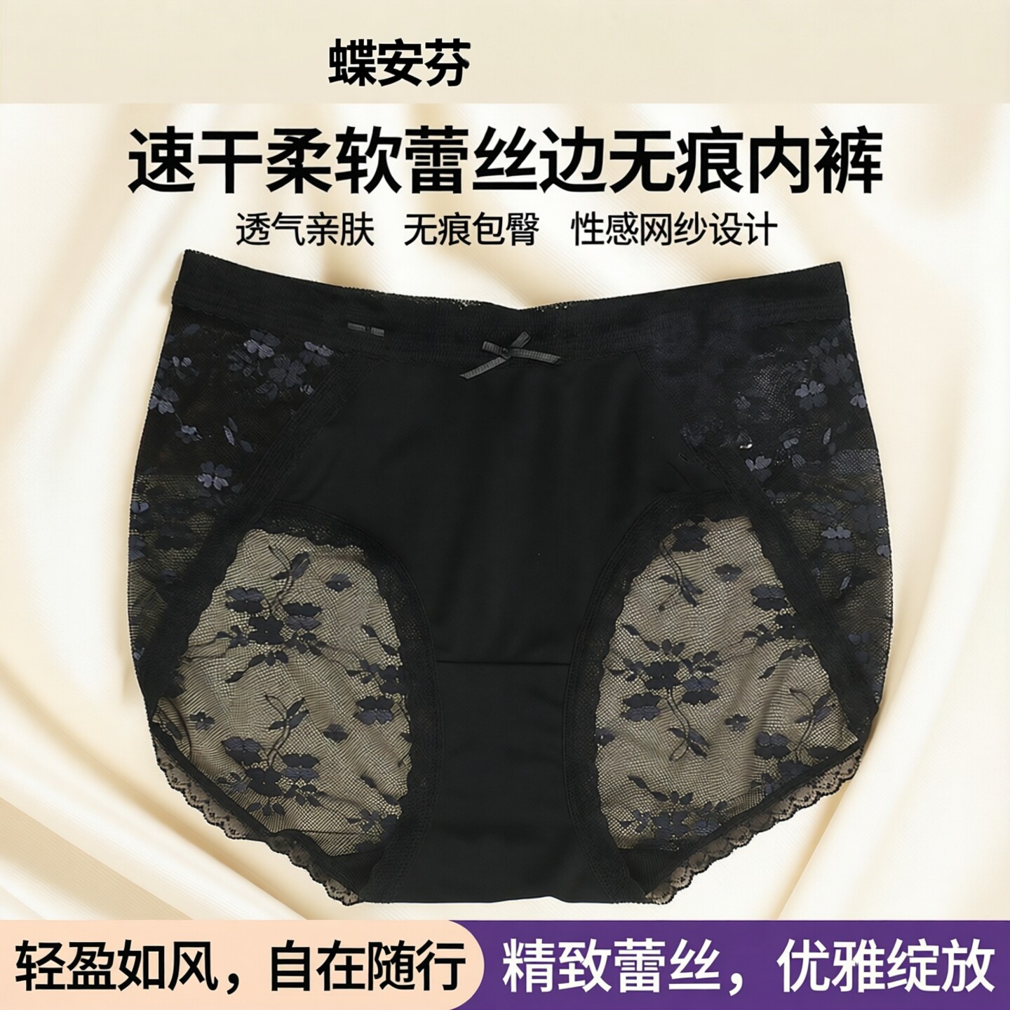 女速干无痕透气舒适 蝶安芬性感蕾丝镂空中腰平角内裤 满30元 包邮
