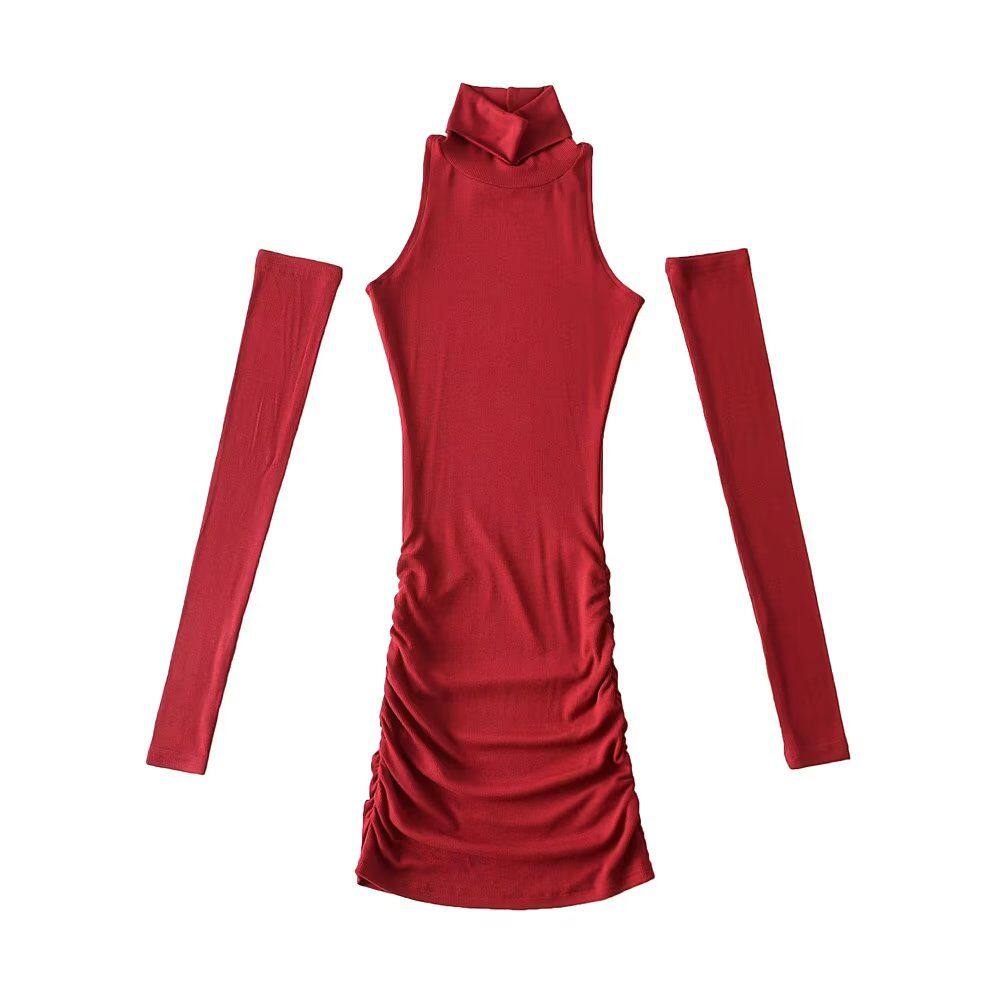 欧美风新款 套高领褶皱连衣裙 超辣街拍显身材包臀裙带袖