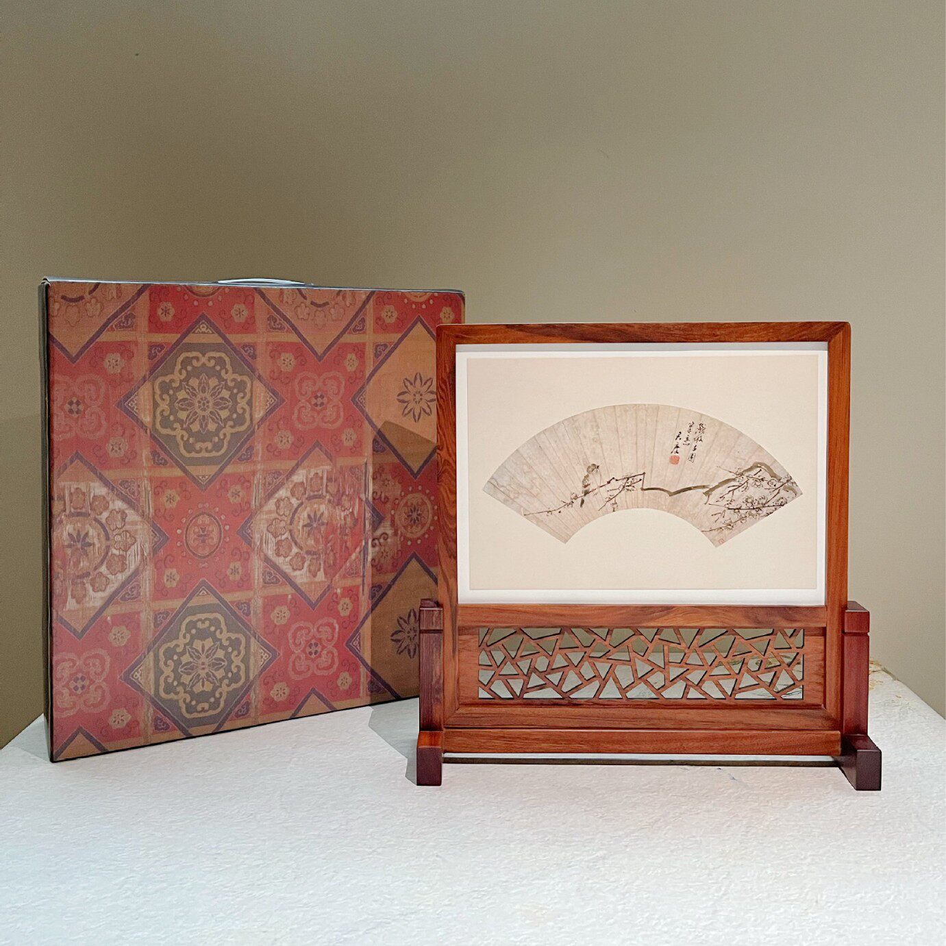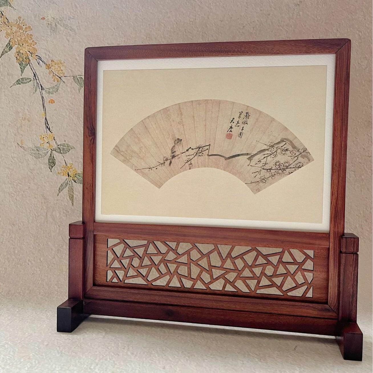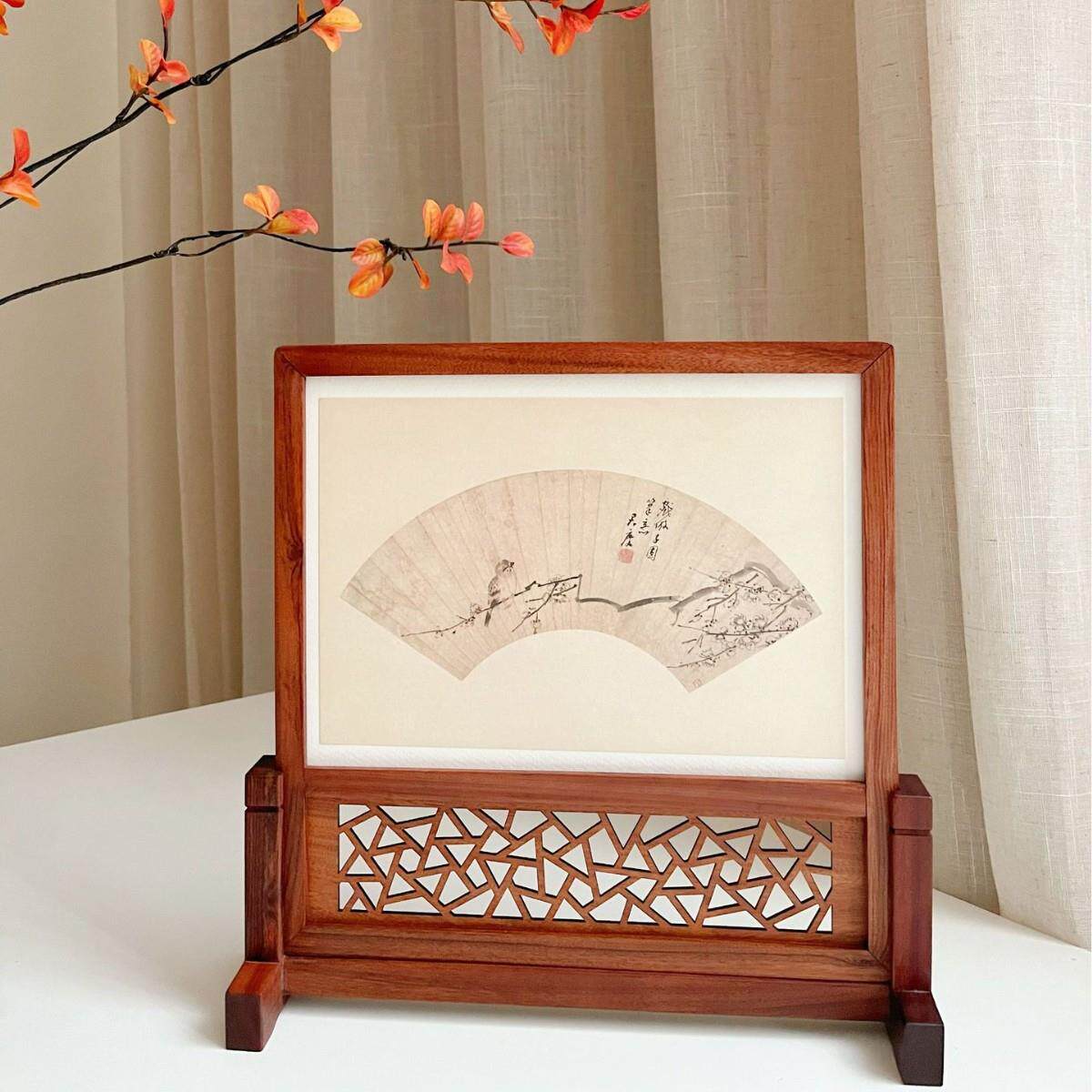 意摆 摆台实木台屏裱框复古饰创 屏风隔断装 入户相玄关红木插屏装