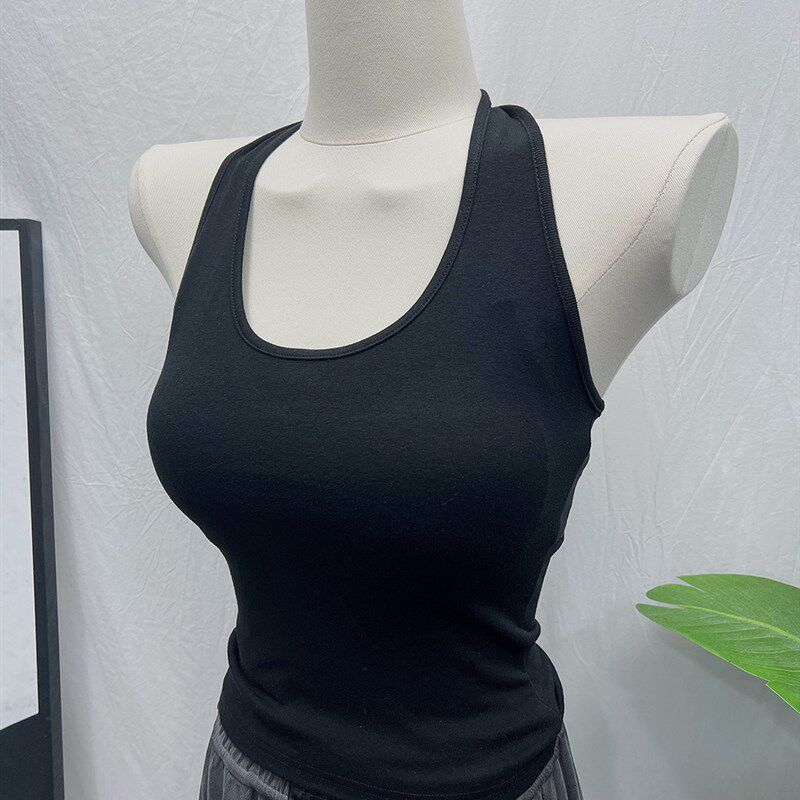 性感百搭漏背挂脖绑带背心女短款 2022夏装 内搭T恤上衣潮 自留