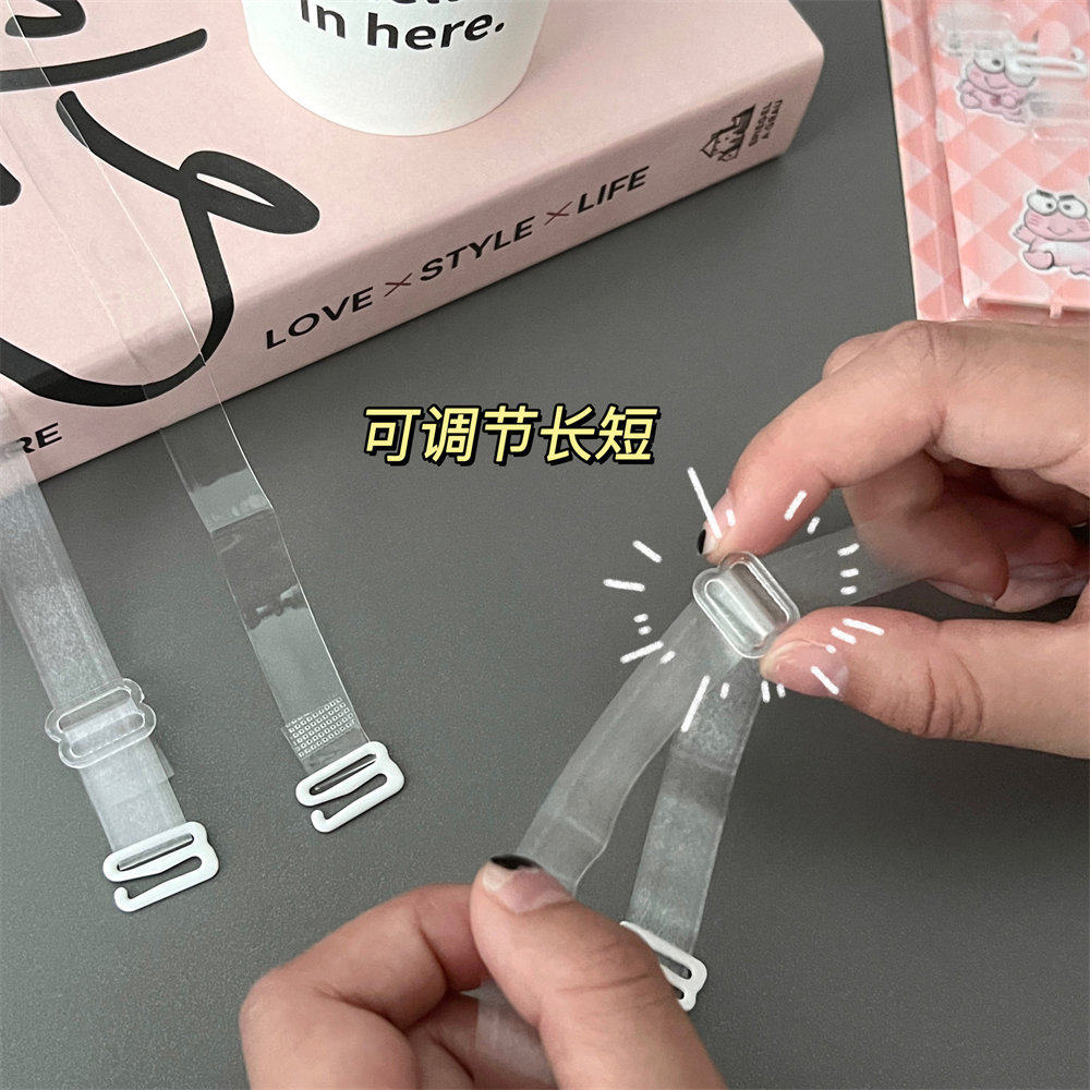 吸塑卡包胶扣透明磨砂隐形痕肩带内衣文胸胸罩吊带夏季 防滑加宽