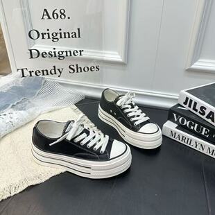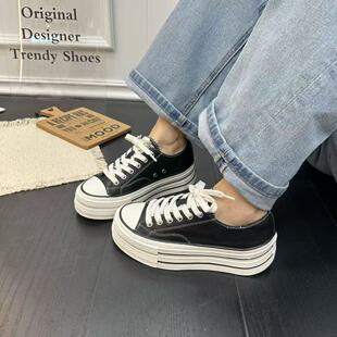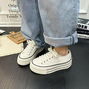 厚底增高帆布鞋 百搭小白鞋 女2026春夏季 复古做旧款 潮 休闲板鞋 韩版