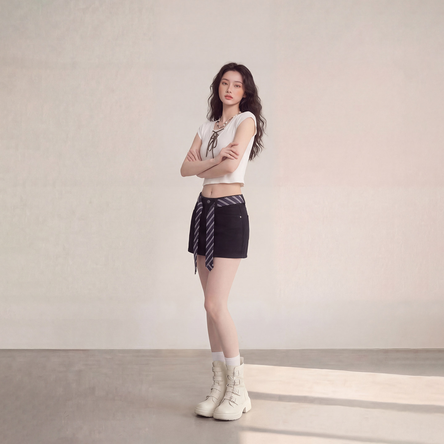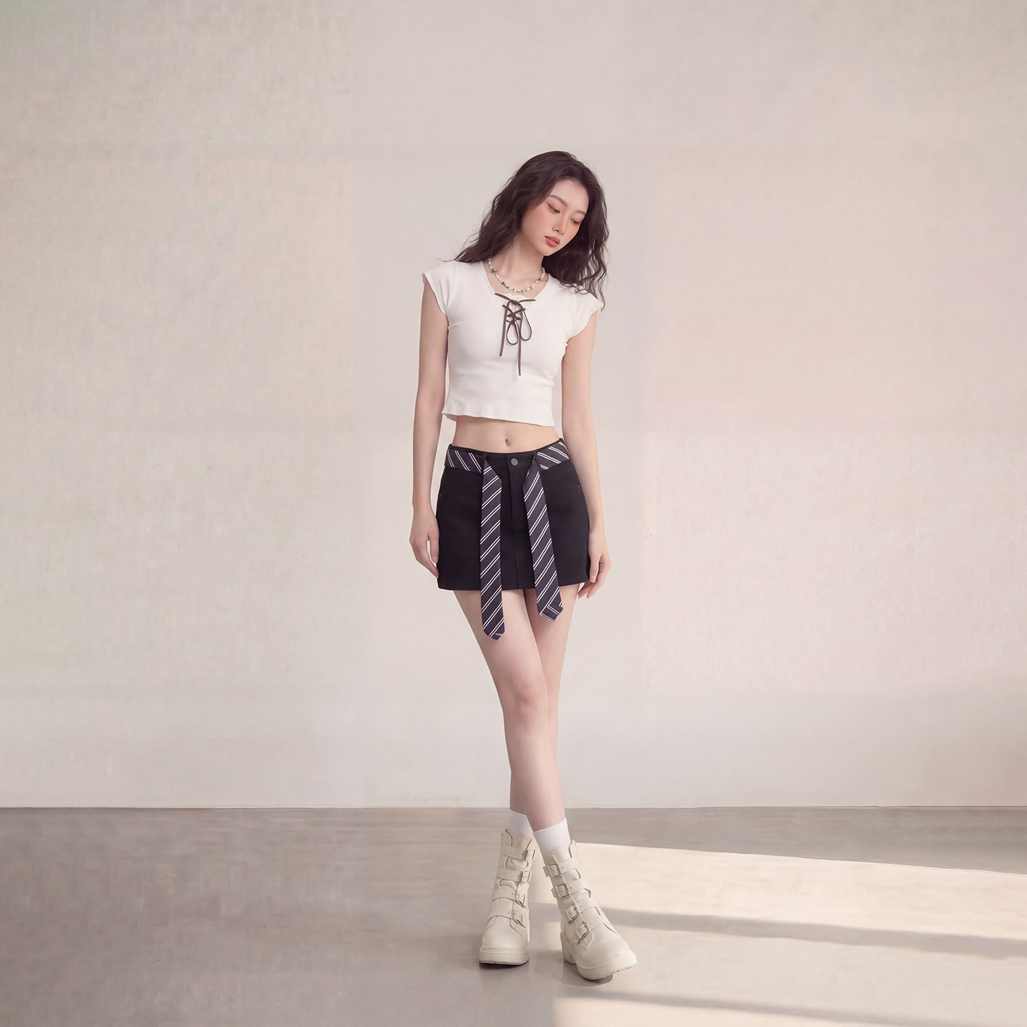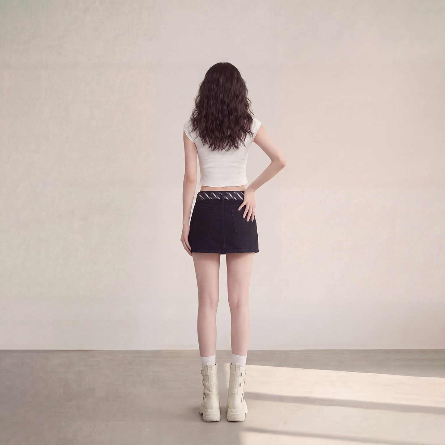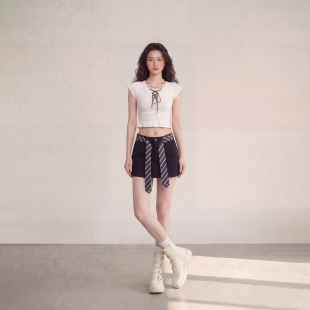 艾格美式 休闲短裙少女辣妹风百搭小黑裙 复古A字半身裙女2026春季